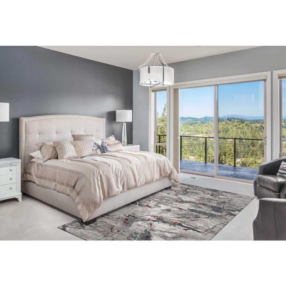 3’x5′ Grey Teal Machine Woven Abstract Splatter Indoor Area Rug