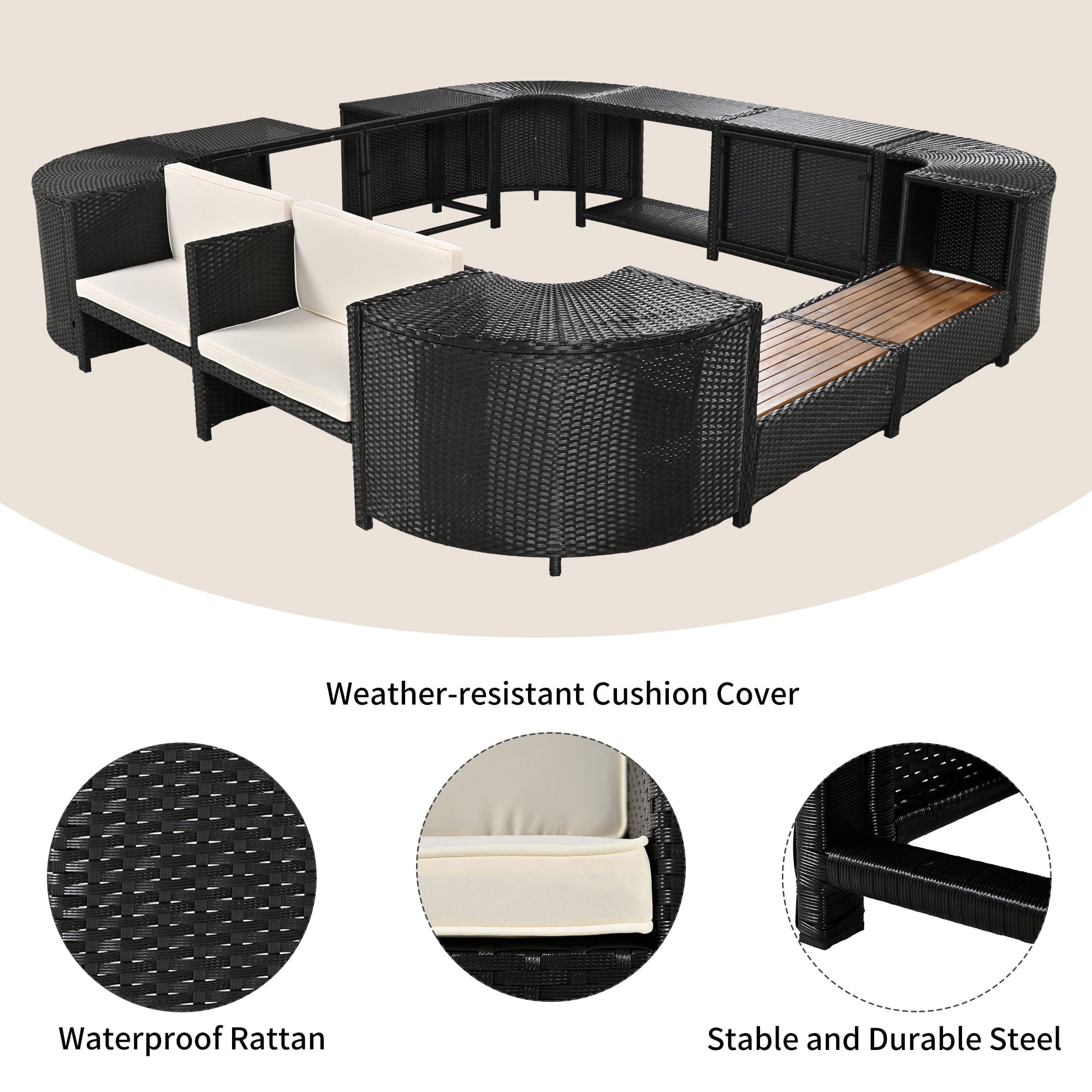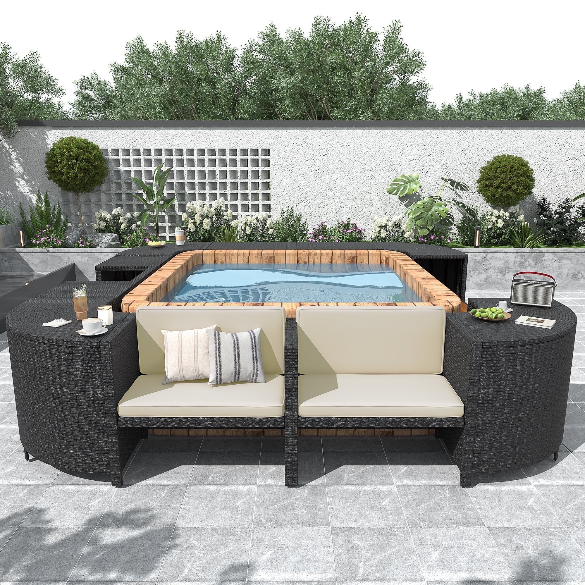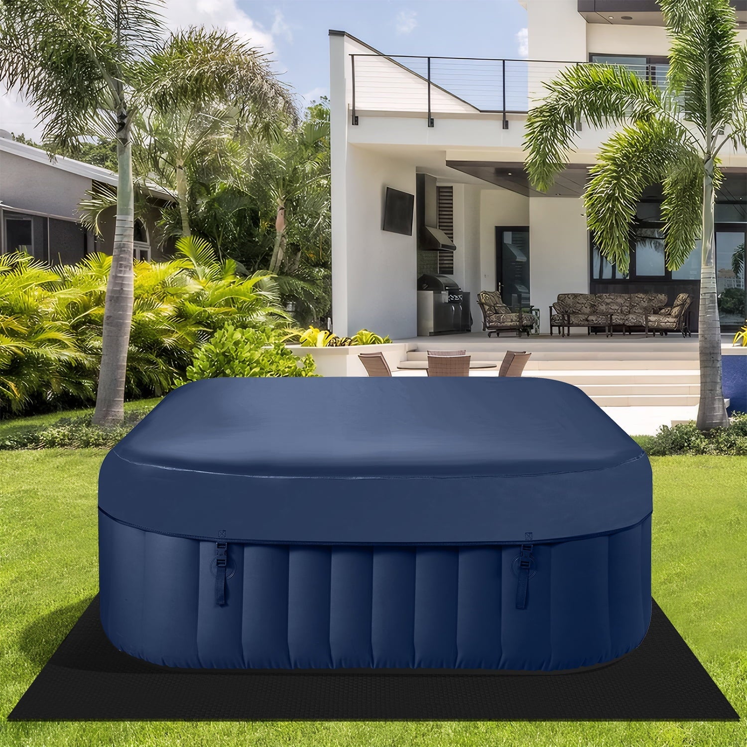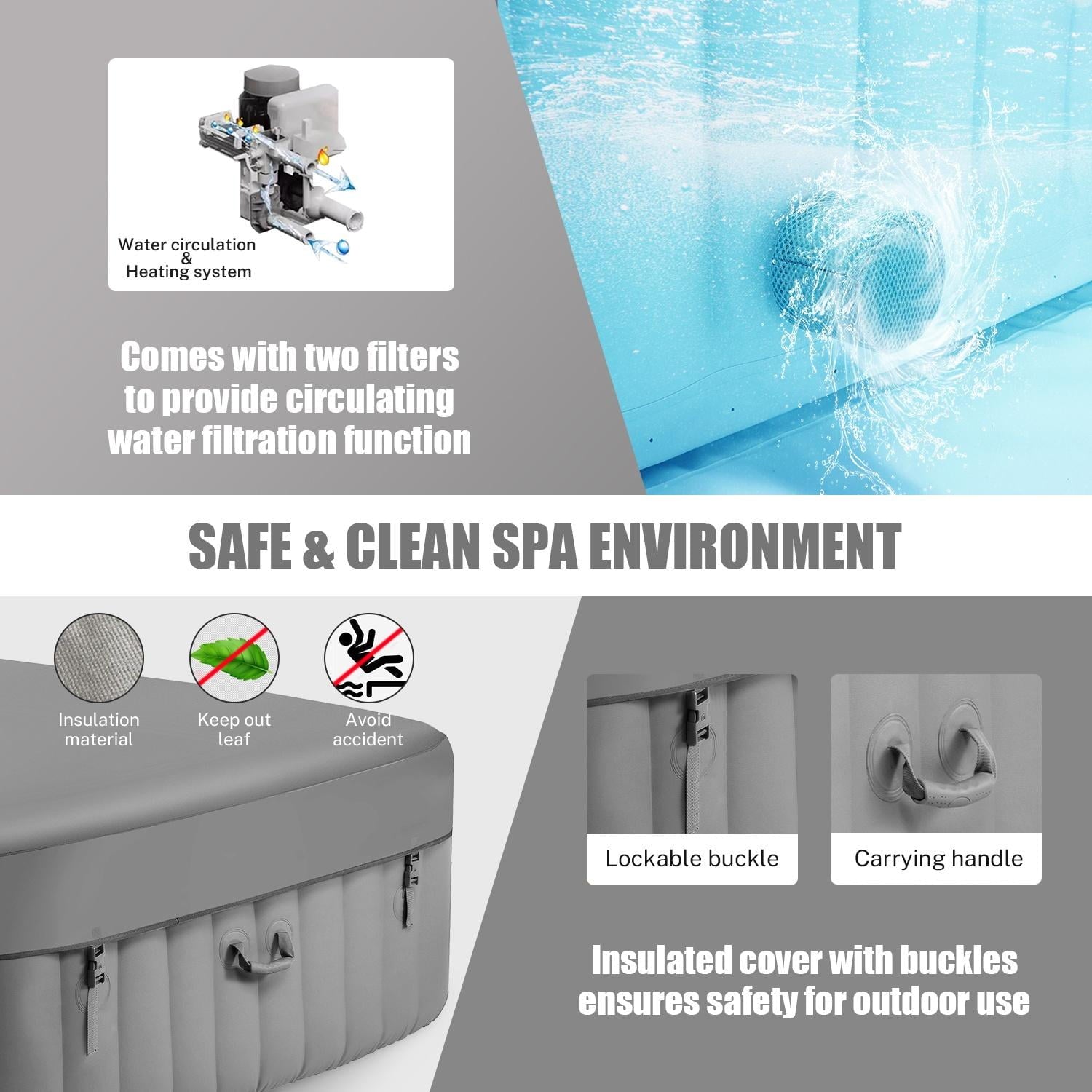 - ♨️【Energy Saving Spa Cover】: The lockable spa cover considerably reduces the time and frequency needed to heat your outdoor hot tub. Additionally, it shields against debris entering the water, thus minimizing the filtration process.