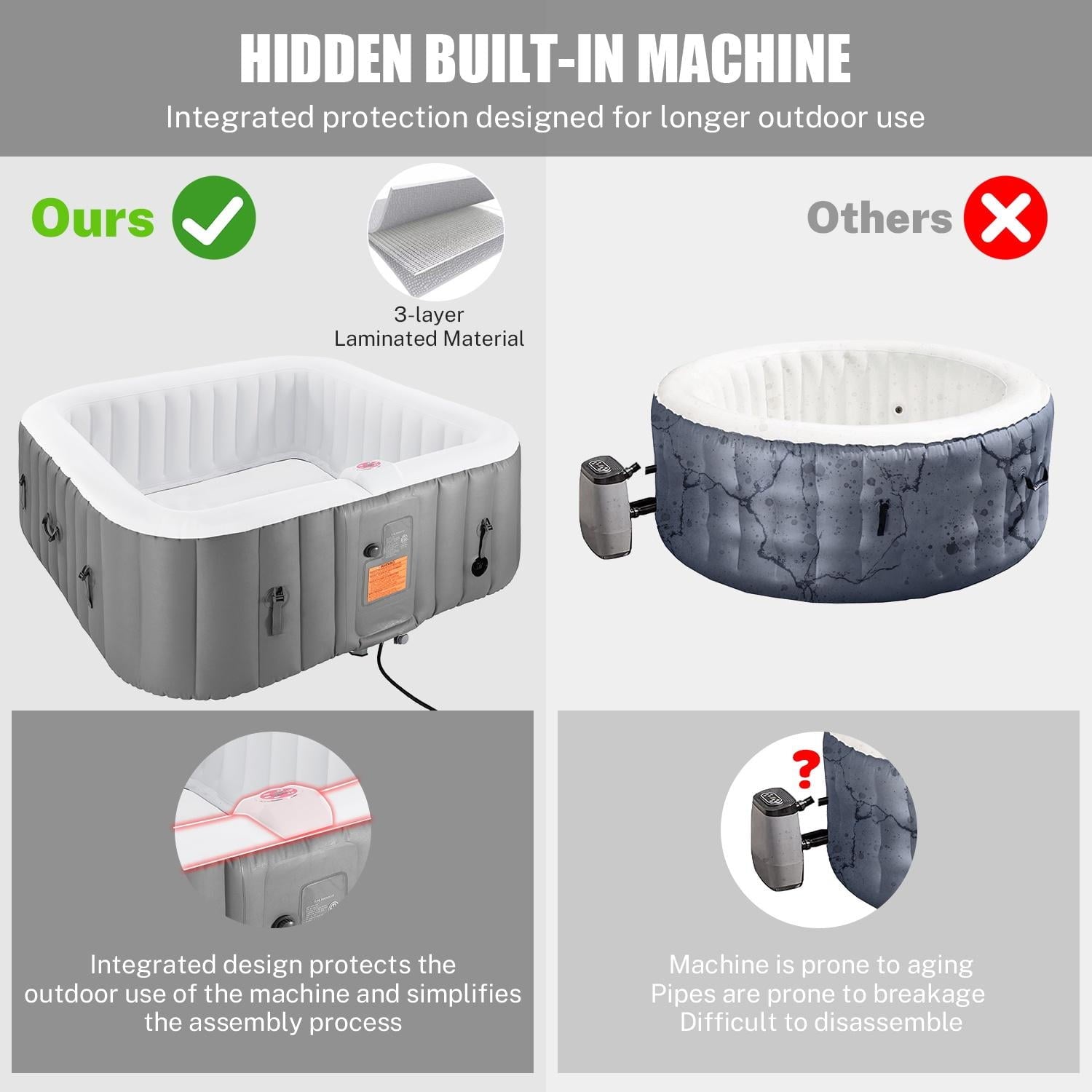 ☀️Note: To avoid hot tub expansion and deformation, please do not expose the product to sunlight for a long time!