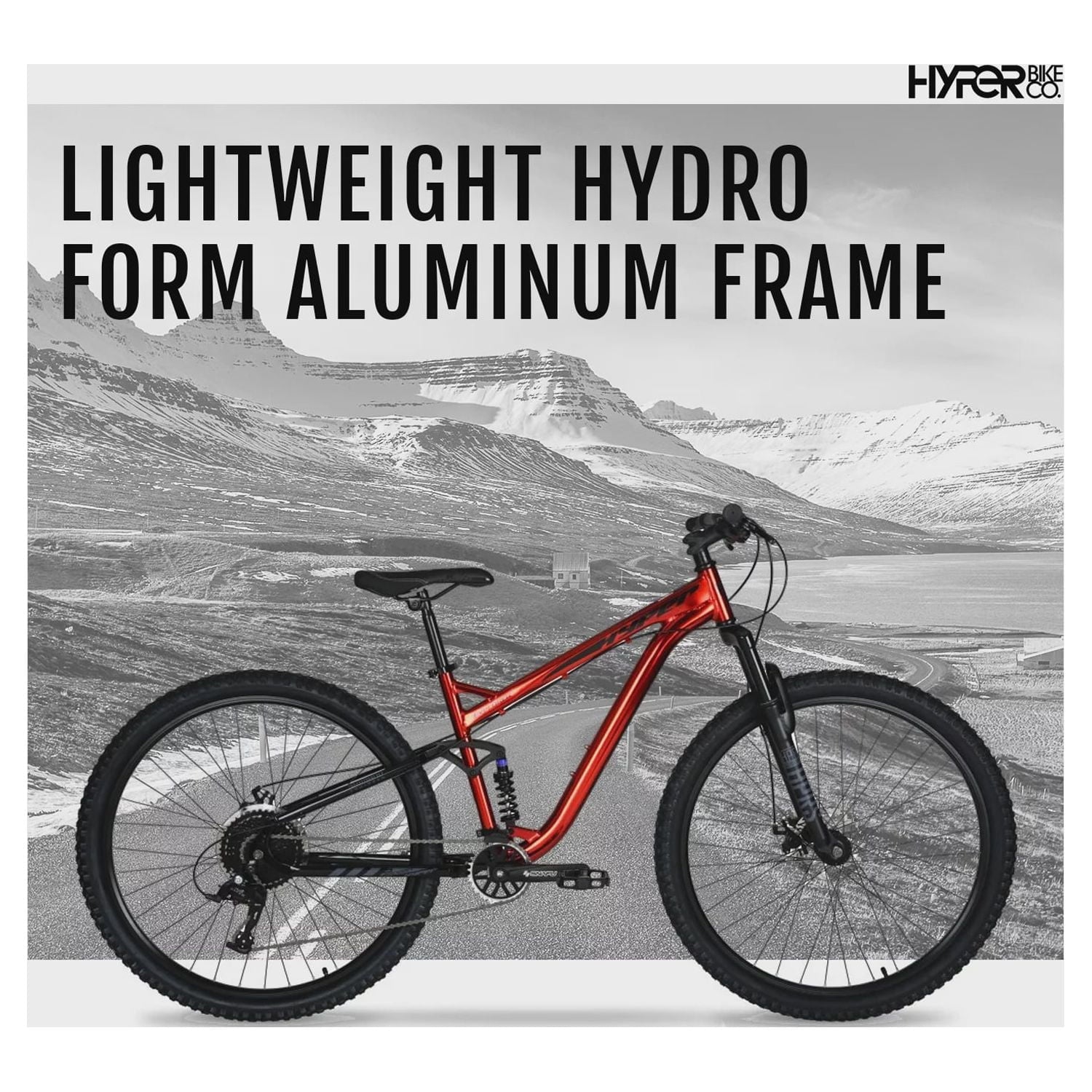 29″ Hyper Explorer Dual Suspension Mountain Bike, Adults Age 13+, Red