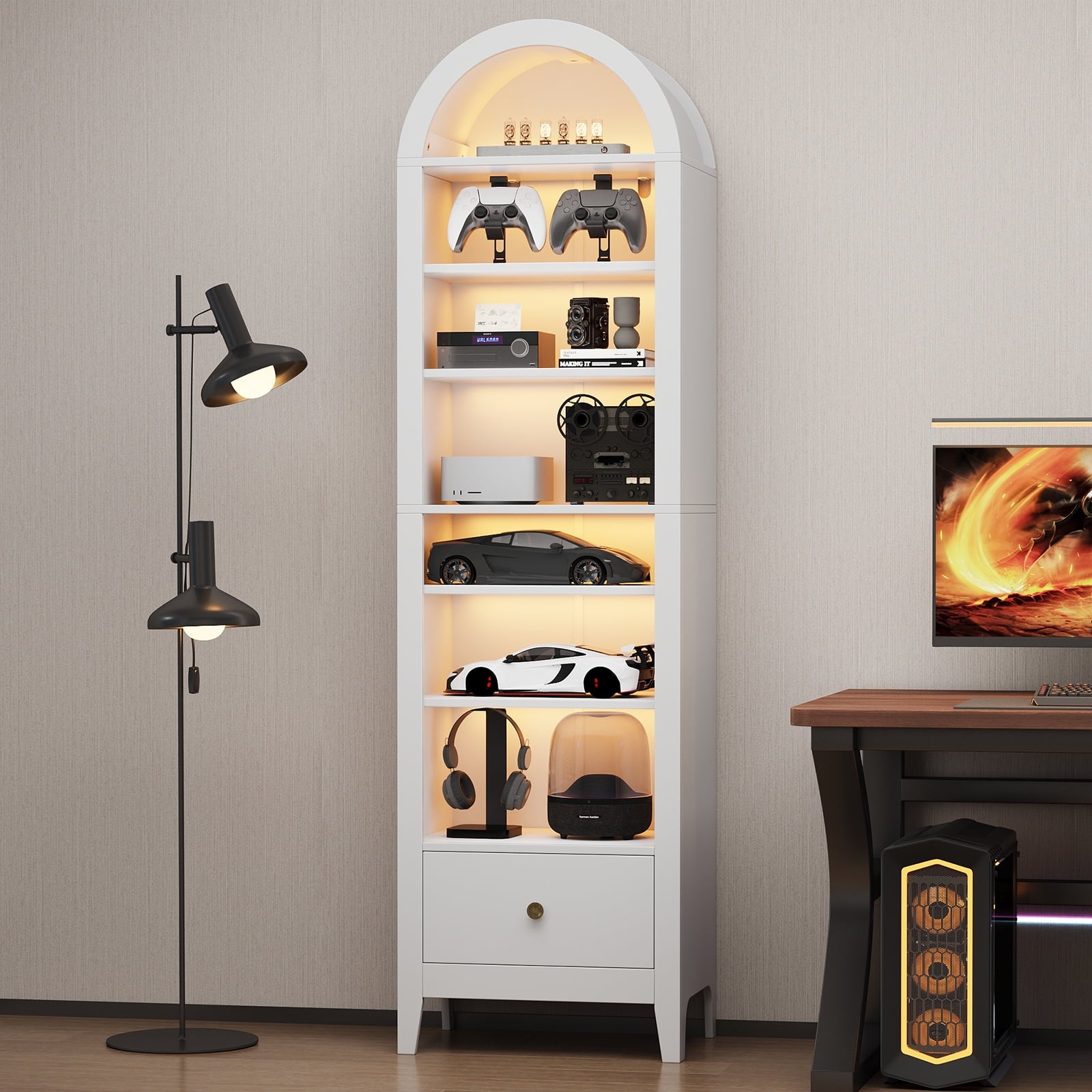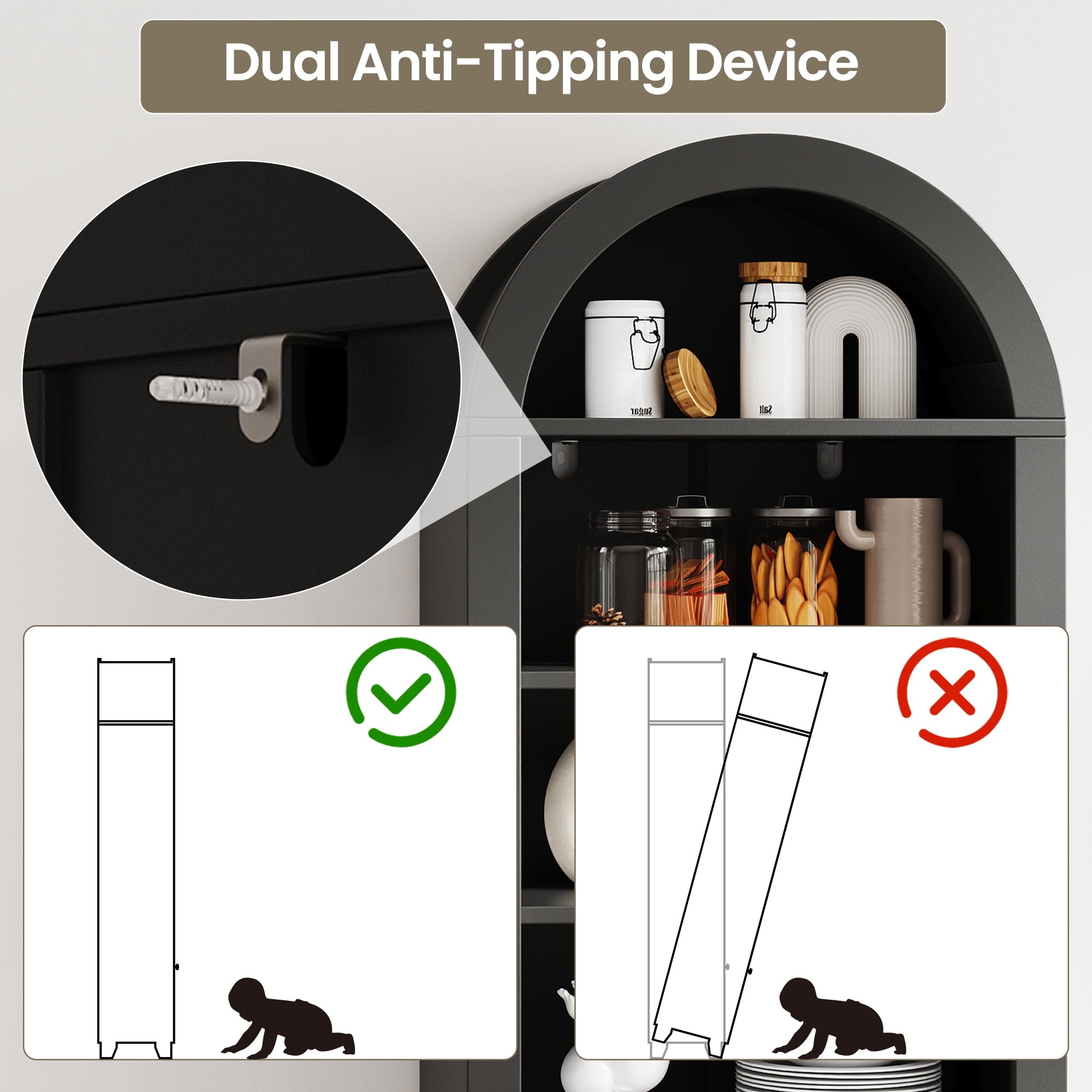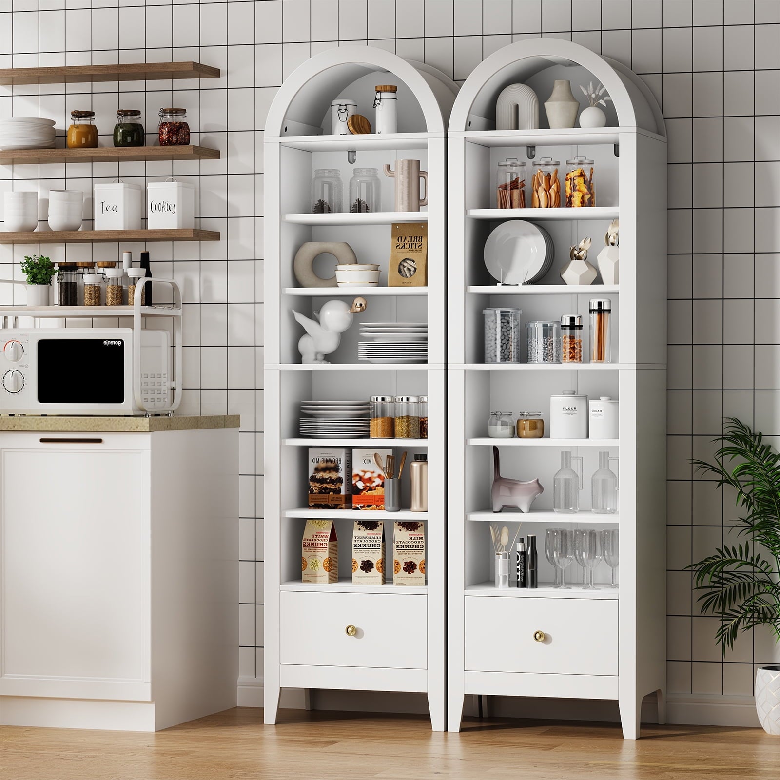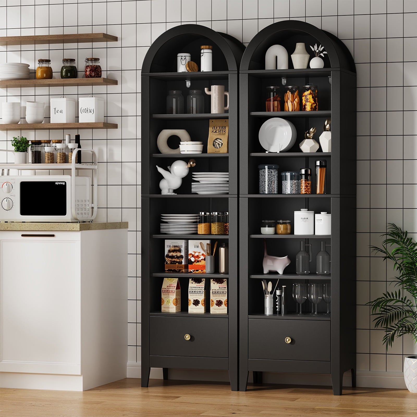 - 🌟Widely used: This arched display cabinet can not only be used as a storage rack, but also as a bookshelf, antique cabinet, shoe rack, filing cabinet, pantry, etc. Perfect for your living room, game room, kitchen, dining room, or any other space. Make your space look well-organized.