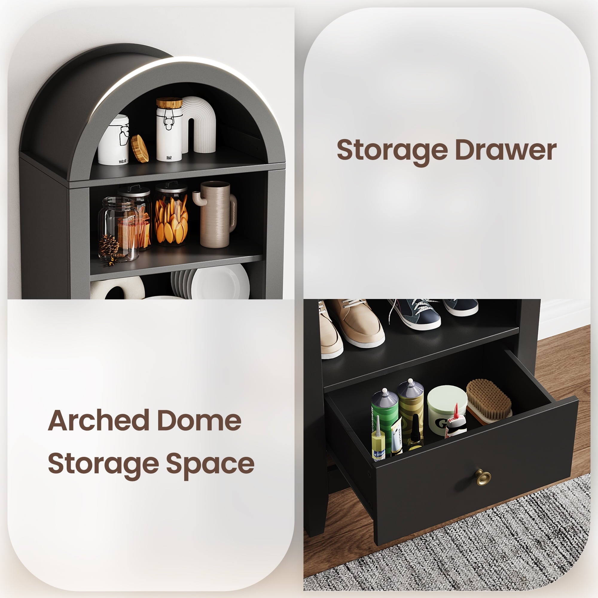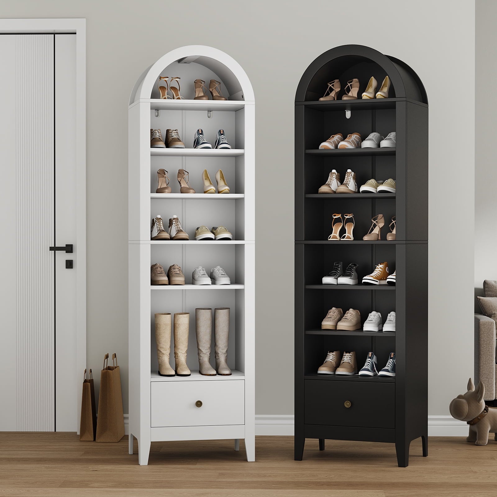 - 🌈Unique arched design: The arched shoe cabinet features a striking arched dome, enhancing overall elegance and making it a prominent feature.