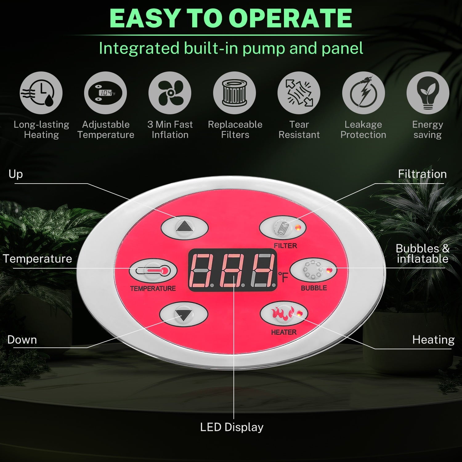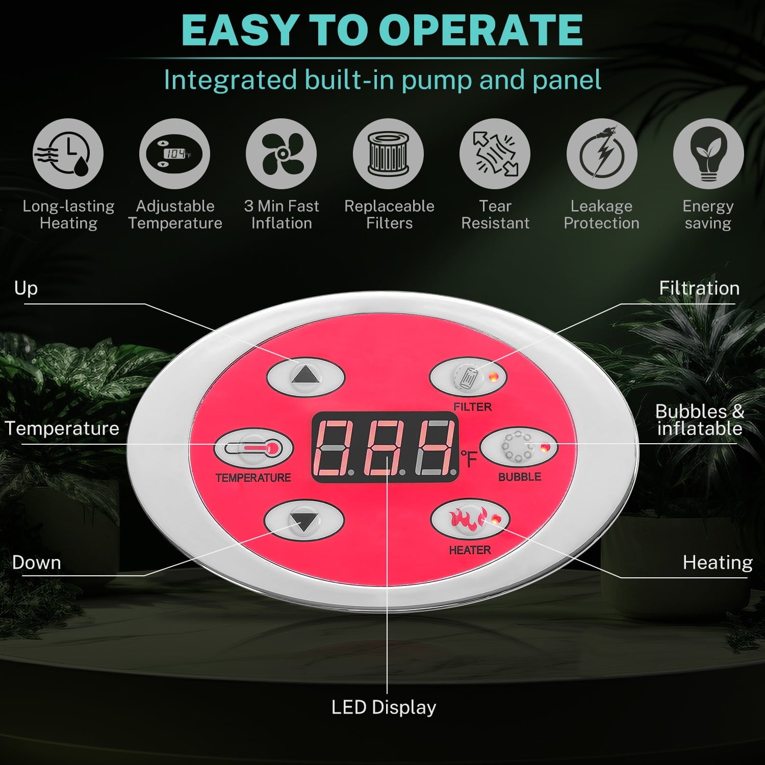 ♨️[Advanced Features]: Equipped with a powerful heating system, adjustable jets, and a digital control panel, you can customize your spa experience to your liking.