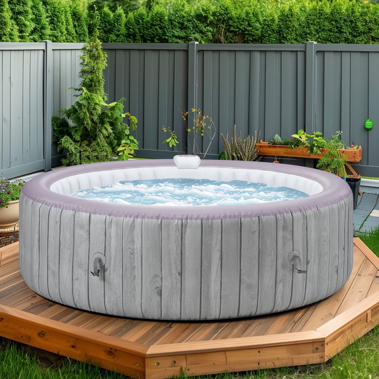 After a long day, immerse yourself in a warm, bubbling oasis right in your own backyard. Our latest model inflatable hot tub offers you the ultimate relaxation experience! This ready-to-use portable spa sets up in just 3 minutes. Simply add hot water, cover it with the inflatable thermal pad, and finally, secure the insulated cover. Before long, you’ll be soaking in bubbles and releasing stress. The upgraded hidden-button control panel not only saves space but also allows you to operate every function with a single touch, such as inflation, filtration, bubble massage, and temperature control. The spacious hot tub accommodates up to 6 people at once, making it the new highlight of backyard gatherings!