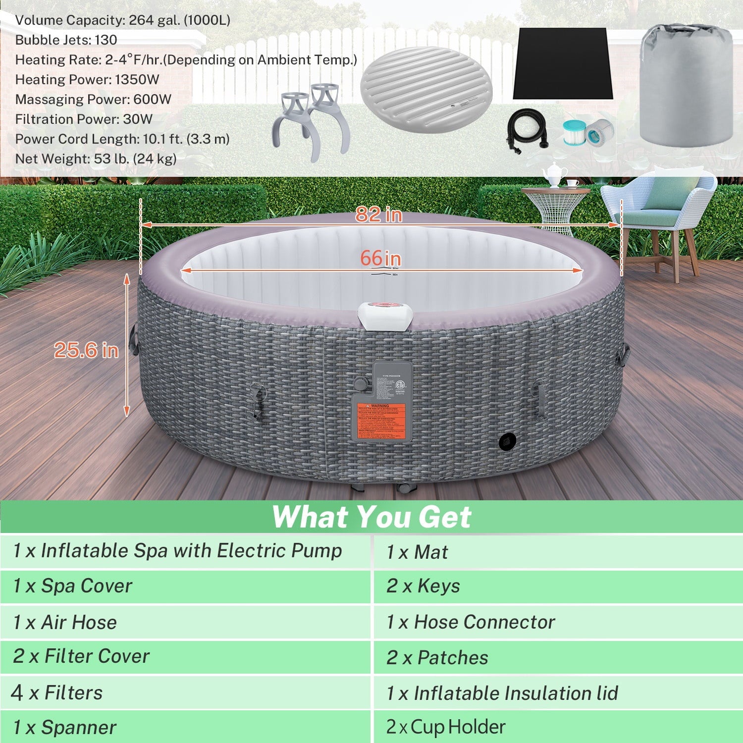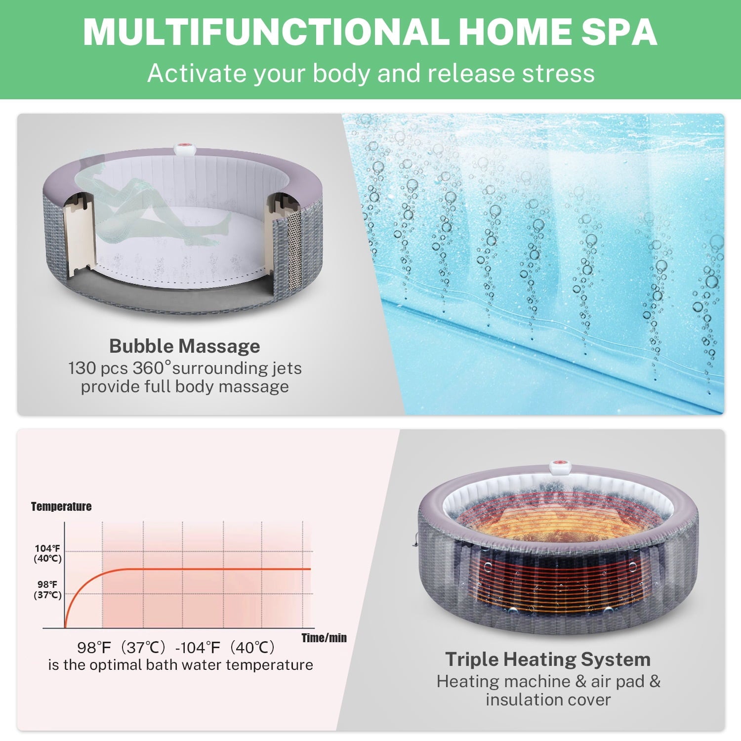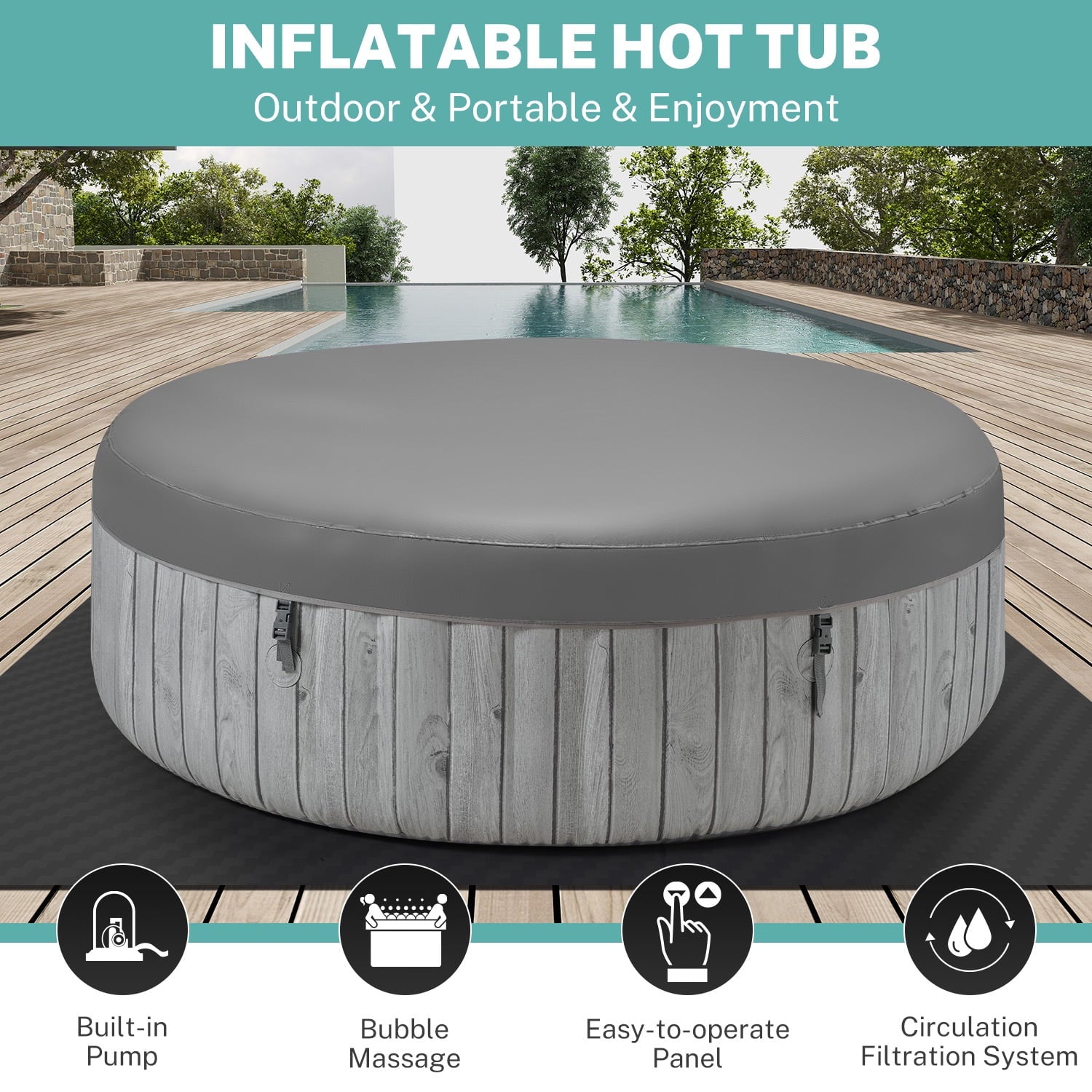 ♨️[Easy Setup]: No need for professional installation. Our hot tub inflates in minutes with the included pump, so you can start enjoying it right away.