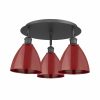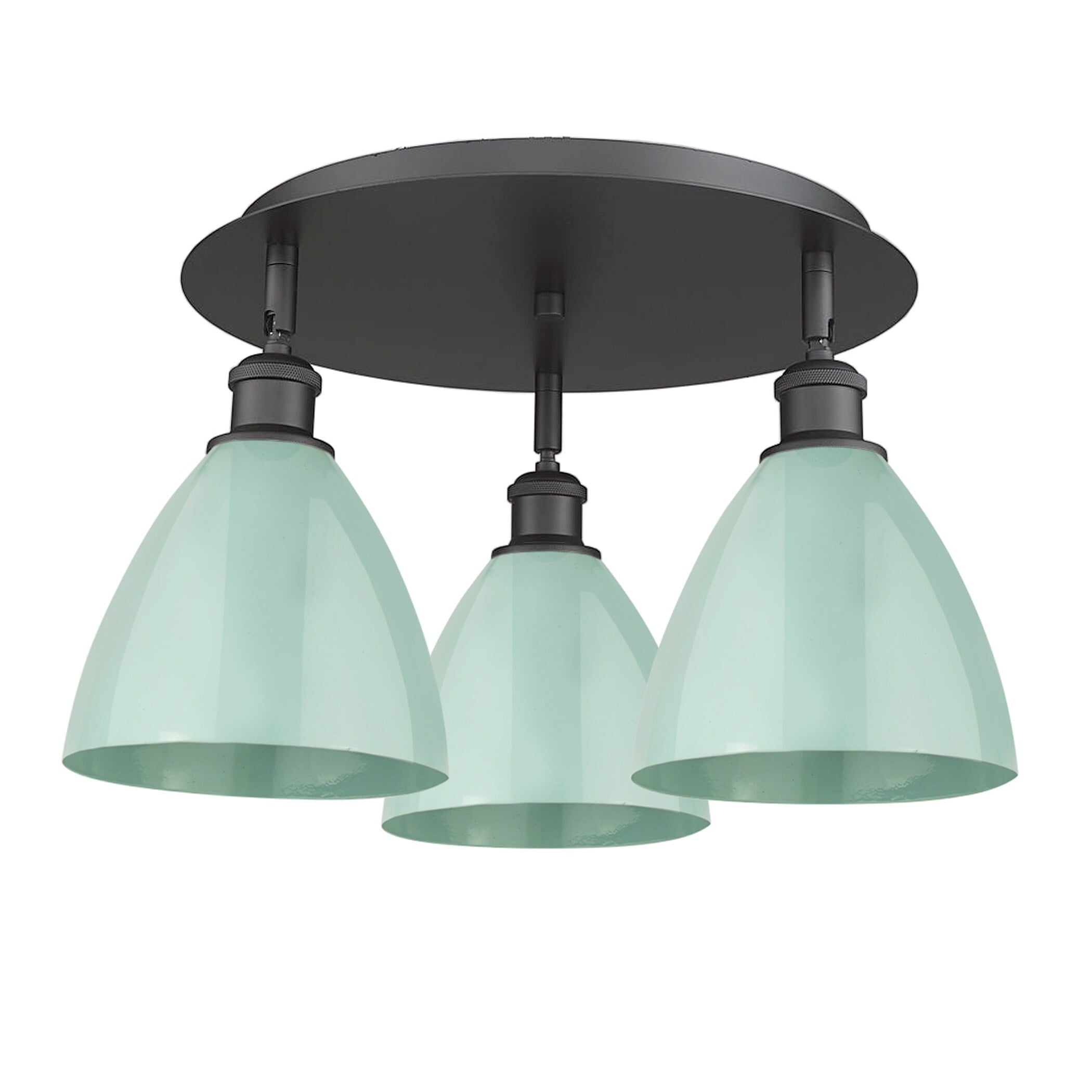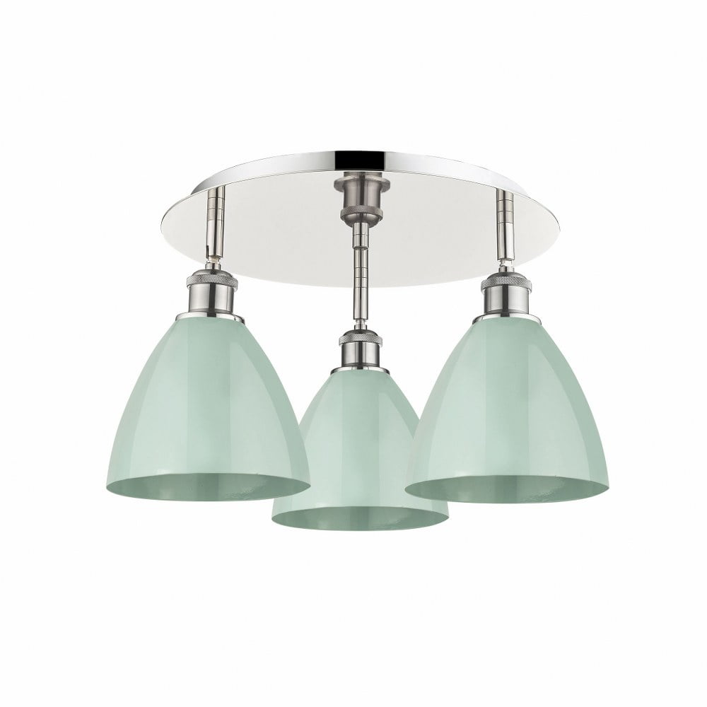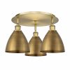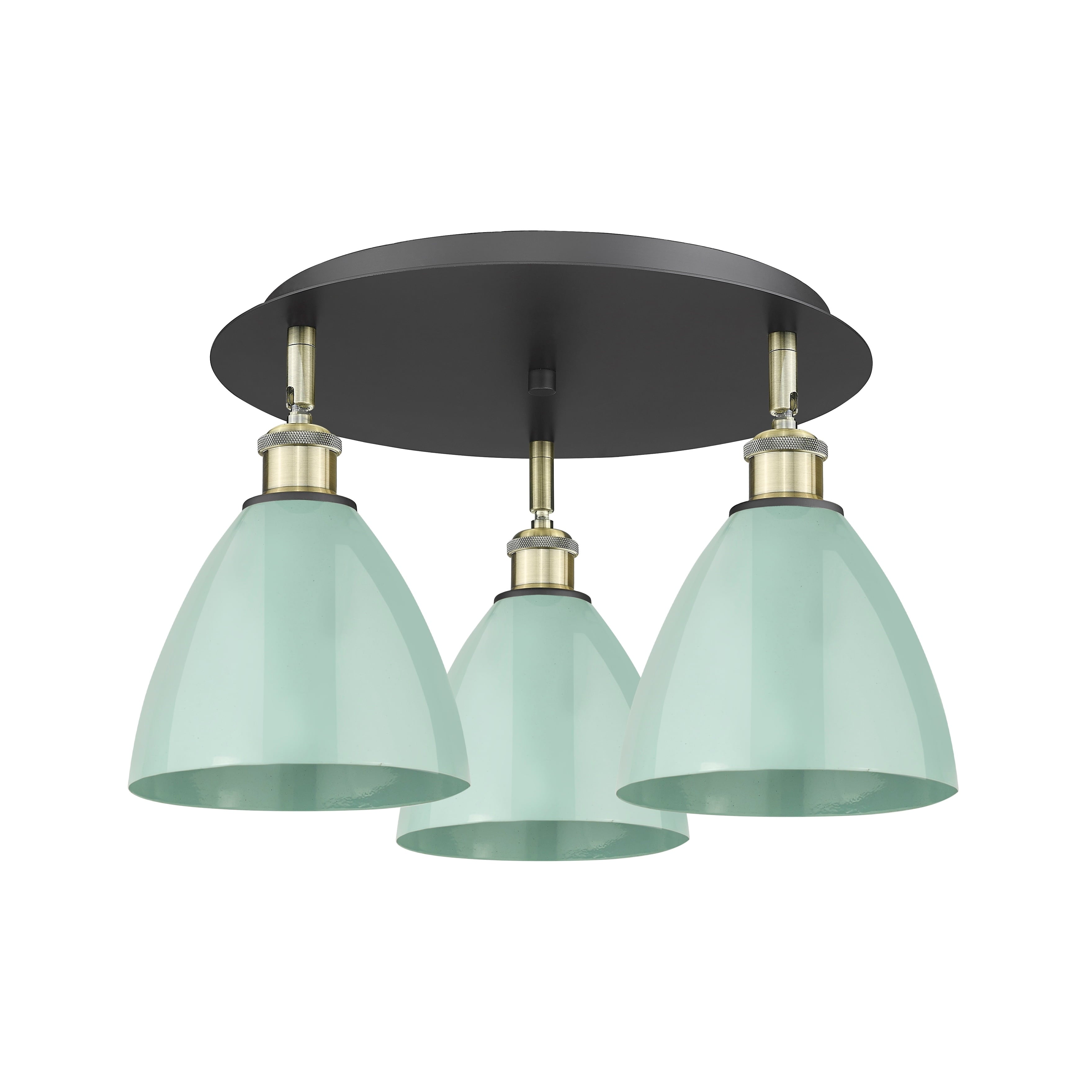 Innovations Lighting-516-3C-AB-MBD-75-BL-Collection: Ballston Dome, Material: Brass, Finish Color: Antique Brass, Width: 19.25″, Height: 10″, Length: 19.25″, Lamping Type: Incandescent, Number Of Bulbs: 3, Wattage: 100 Watts, Dimmable: Yes, Moisture Rating: Damp Rated, Desc: A truly dynamic fixture, the Ballston fits seamlessly amidst most d�cor styles. Its sleek design and vast offering of finishes and shade options makes the Ballston an easy choice for all homes. UL/CUL Damp Rated / Rated for 100 watt maximum per socket / Compatible with Incandescent, LED, Fluorescent and Halogen bulbs / Flush-mounted with 2mm cast canopy / Sloped ceiling compatible / Finish on the interior of the metal shade matches the exterior / Socket angle may be adjusted for desired appearance. ,-Ballston Dome – 3 Light Flush Mount In Industrial Style-10 Inches Tall and 19.25 Inches Wide-Antique Brass Finish-Blue Shade Color