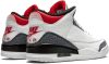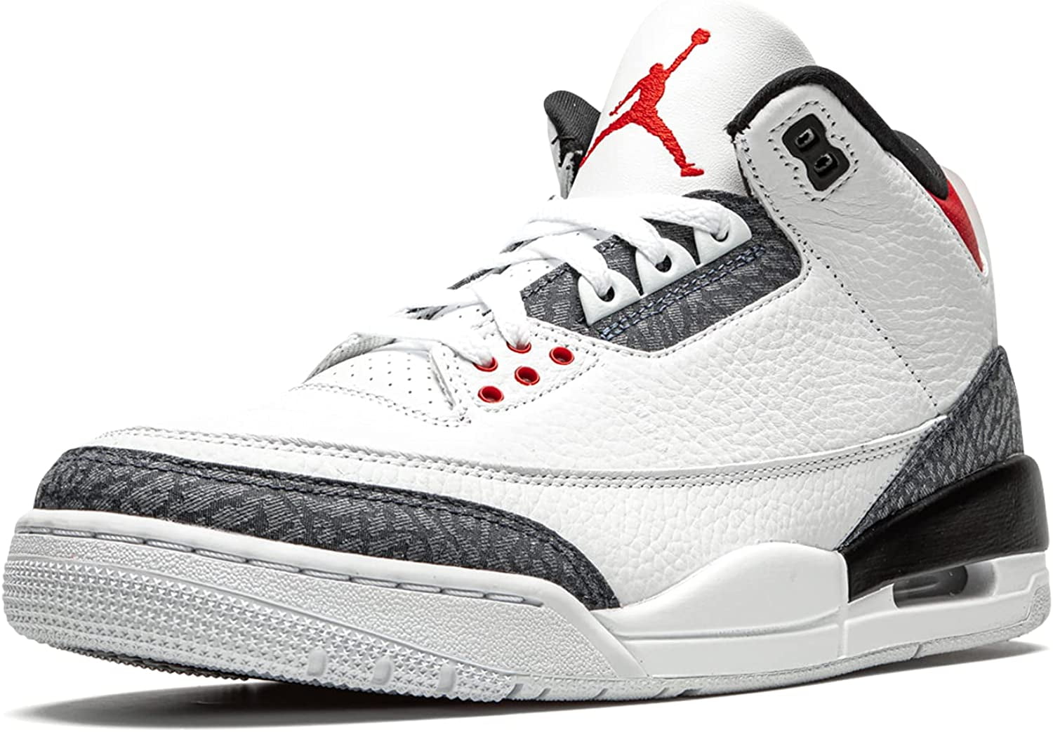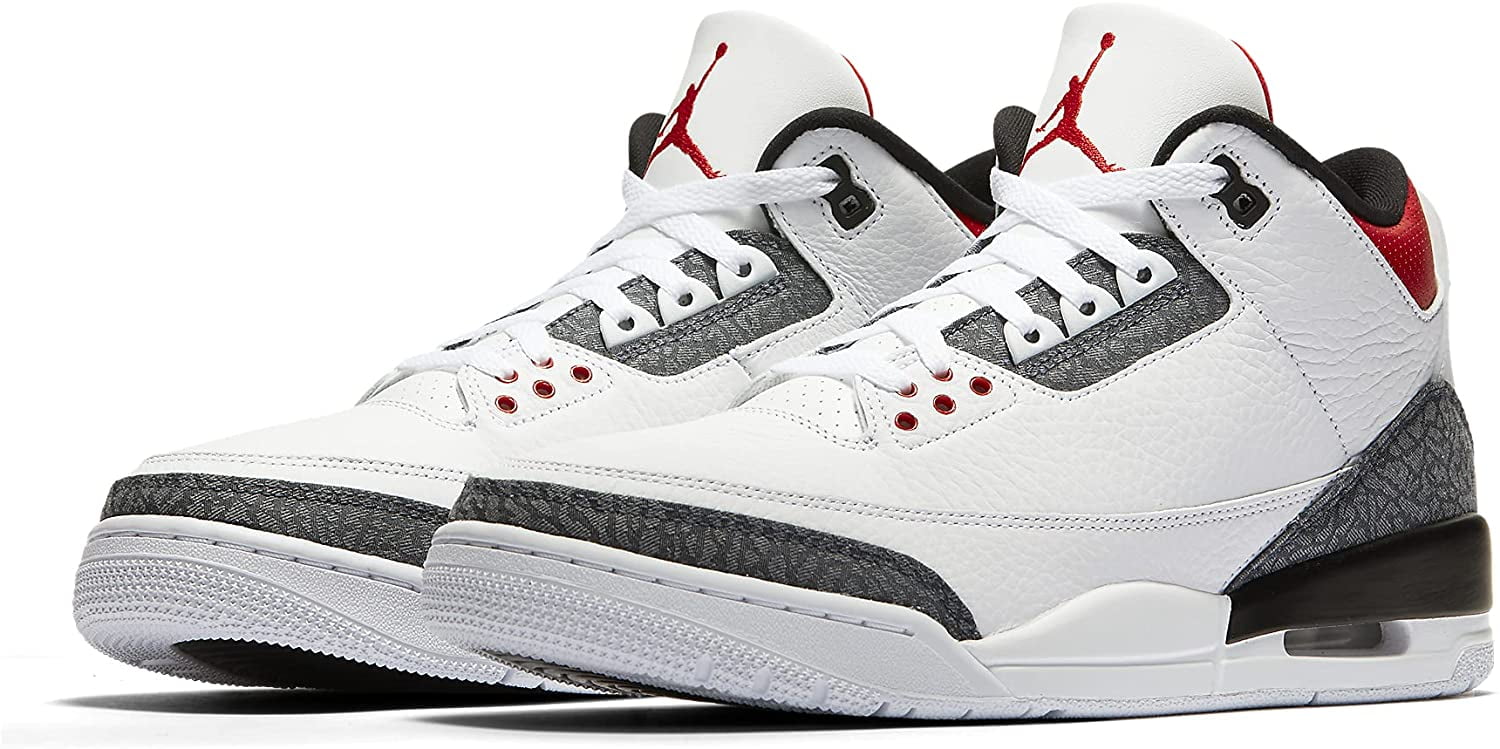 The Air Jordan 3 Denim Fire Red is an alternate colorway of Michael Jordans third signature shoe that features denim-based accenting. Released in Summer 2020, the Jordan 3 Denim Fire Red displays a brand new appearance while retaining the models core design details. White leather appears as the base of the upper. Contrasting elephant print finished in a durable denim material is located on the mudguard on the heel, toe cap, and upper eyelets. Fiery red hardware dots the lower eyelets and red dotted leather detailing appears on the collar. Additional details include a black liner, red embroidered Jumpman on the tongue, and translucent heel with dual Jumpman and Nike Air insignias. Release date: August 27, 2020.