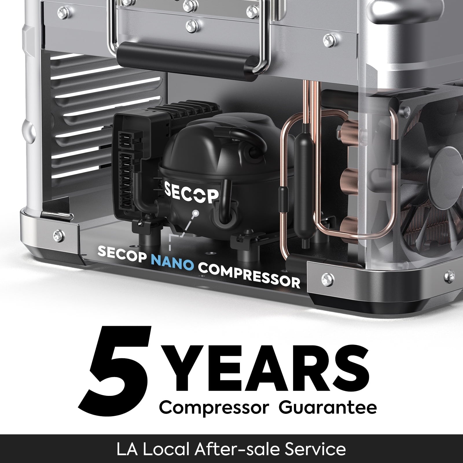 The ICECO APL20 is a compact, single-compartment 12V car refrigerator ideal for solo travelers, daily commutes, or short trips where portability meets performance. Despite its smaller size, it features the same high-efficiency aluminum shell for durability and heat dissipation, fast cooling from -4°F to 68°F in minutes, and support for both MAX and ECO modes. Its minimalist build doesn’t compromise on quality or innovation—compatible with ICECO’s PB250 magnetic battery (sold separately), it offers reliable refrigeration in a lightweight, rugged package built for cars, trucks, and compact spaces.