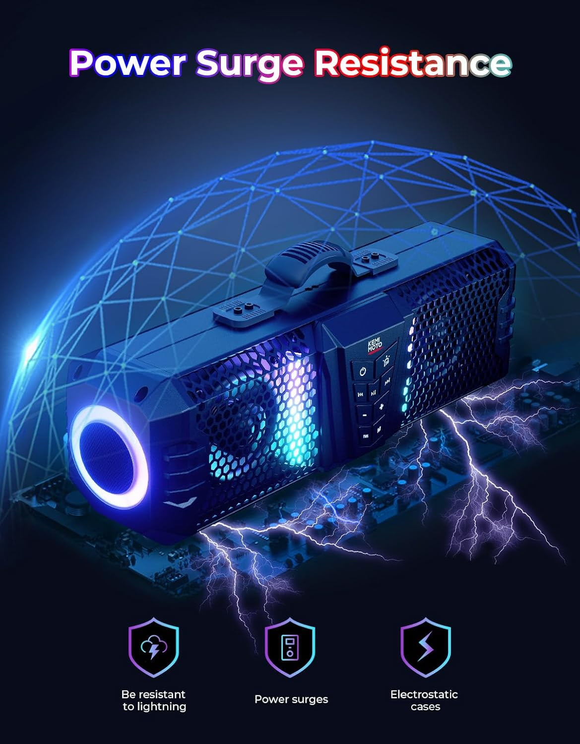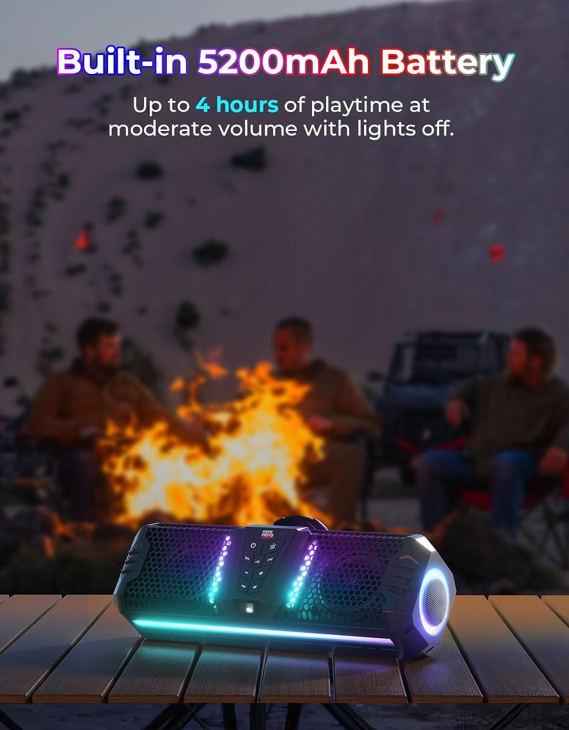 • IP66 Weatherproof Outdoor Soundbar: Made of IP66 Marine Grade weatherproof aluminum alloy case, this sxs sound bar is born for outdoor use. It can work in high humidity, low temperature, and dusty environments, withstanding extreme weather conditions from -20℃ to 85℃. Plus, the upgraded built-in protection design prevents the speaker bar from breaking in extreme weather and power surges during vehicle starts. Elevate your off-road experience with this dependable partner.
