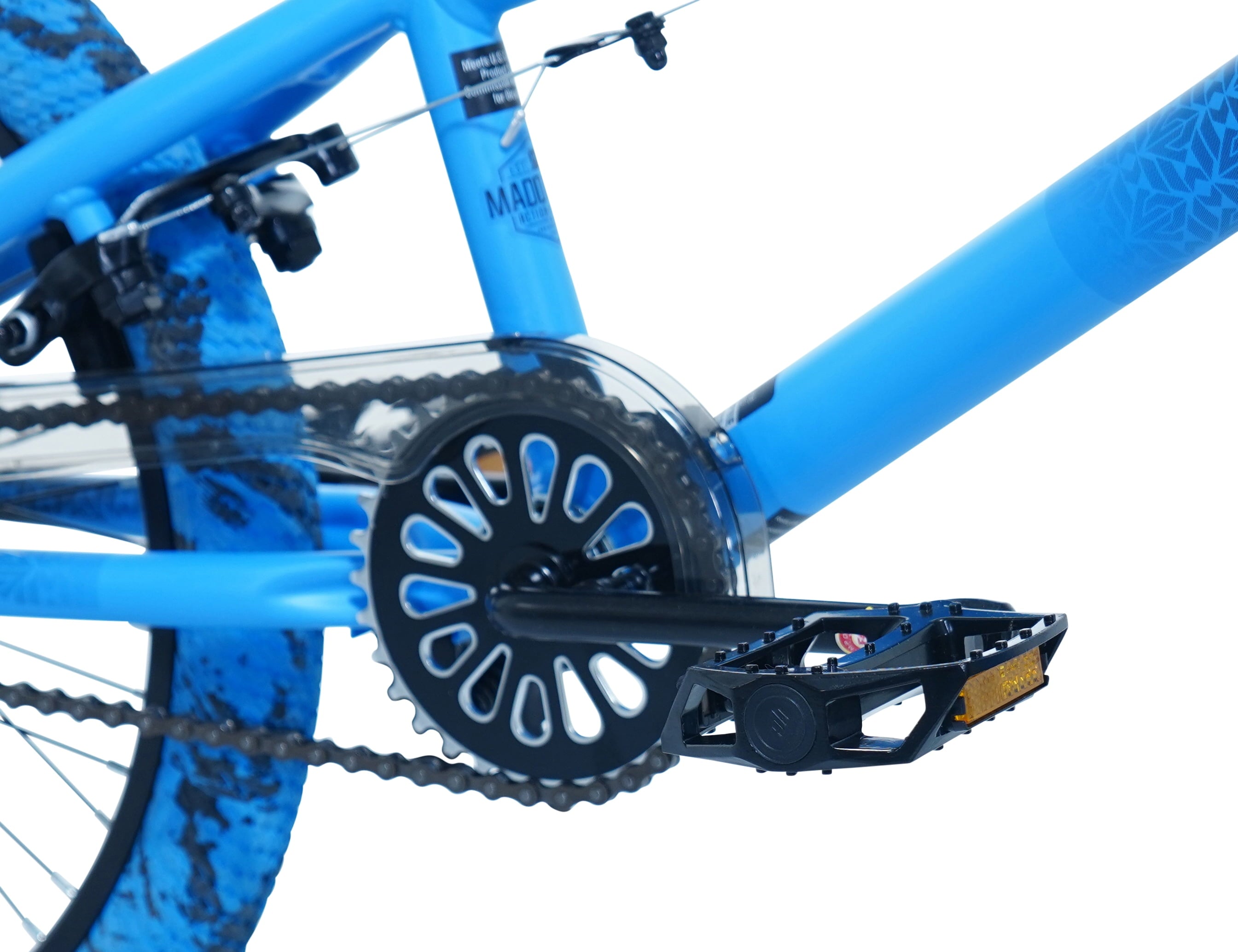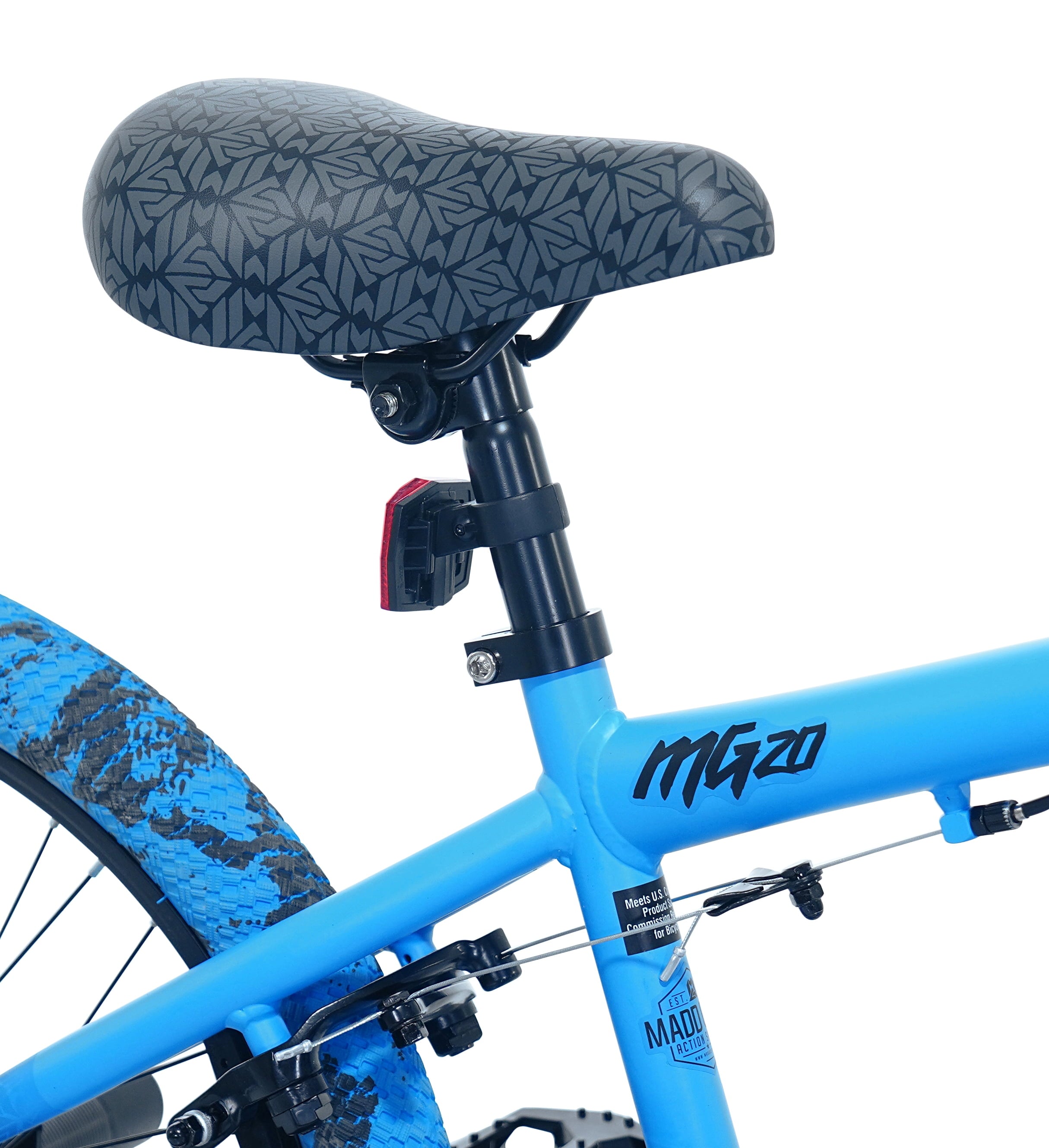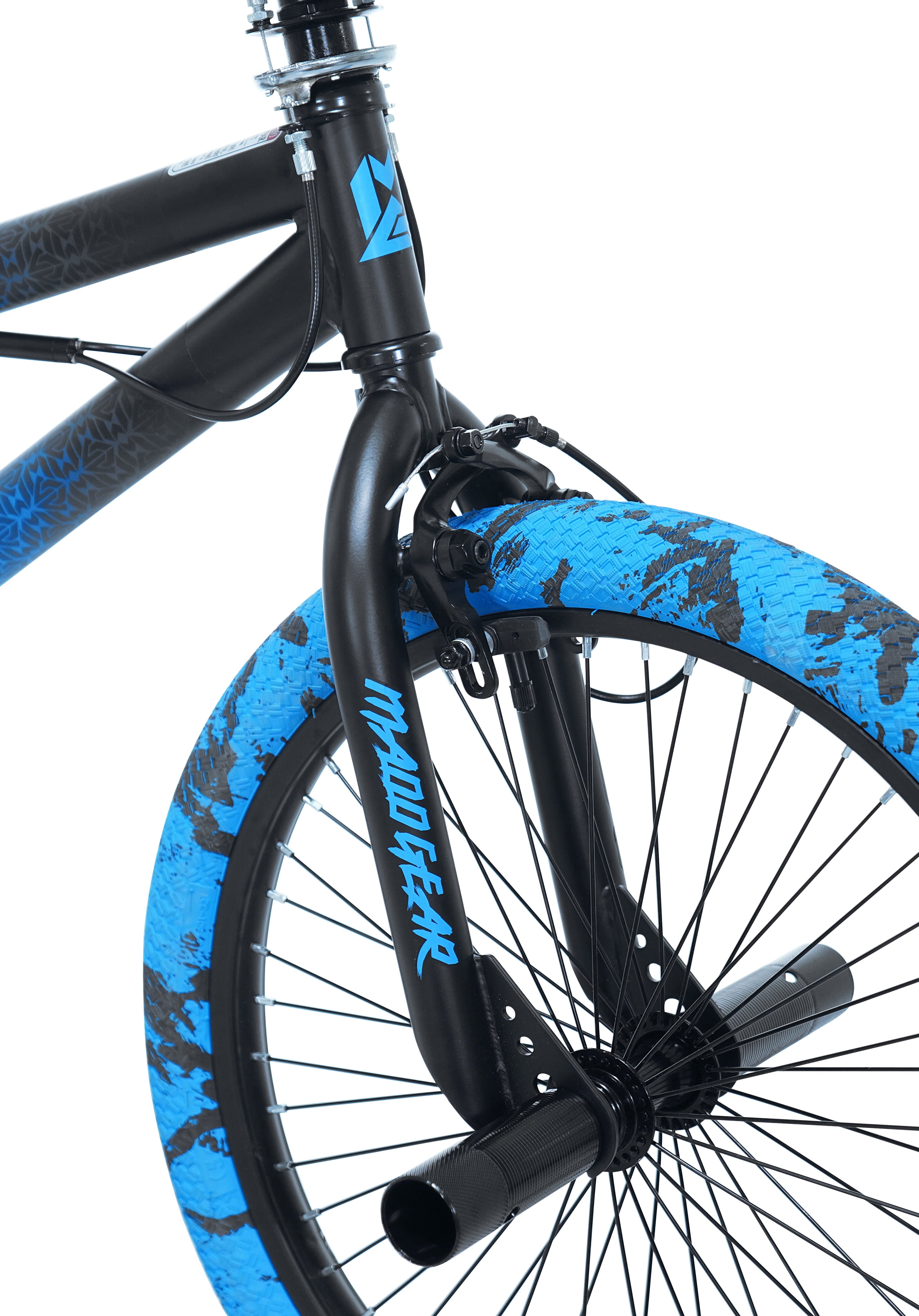 The 20″ Madd Gear child freestyle bicycle has a super cool blue/black ombre satin finish. It is a tricked-out ride that is made for action and fun. This bike is equipped with a high-tensile steel frame, front and rear steel pegs. An alloy rotor system makes it easy to perform a variety of tricks and allows you to do 360-degree handlebar rotations. The MG20 bike also has sturdy 48 spoke alloy rims, dual-caliper alloy hand brakes, alloy pedals, and a smoke color PVC chain cover. Kids will love using it to shred the neighborhood streets.