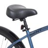 The Kent 27.5 Inch Male Sea Change Beach Cruiser Bike, in a sleek metallic blue, is designed for beachside rides or leisurely city tours. Built with a strong steel frame, it includes front and rear fenders for added protection. Features like an adjustable padded saddle and soft rubber grips ensure maximum comfort. The bike uses smooth-rolling cruiser tires and a simple coaster brake system for easy stopping. Its adjustable handlebars provide a relaxed riding position. Ideal for ages 14 and above, this bike promises comfort and style for both teens and adults.