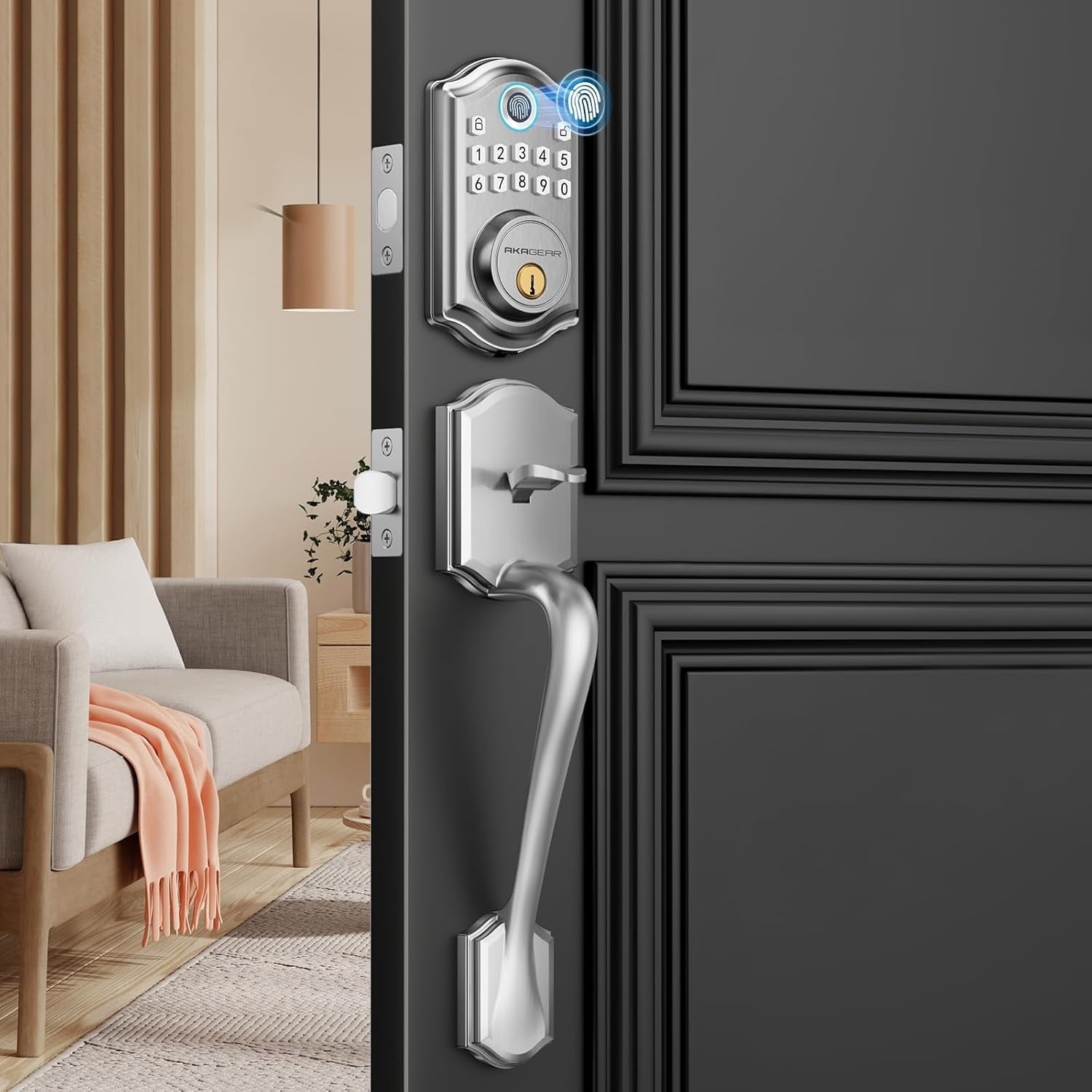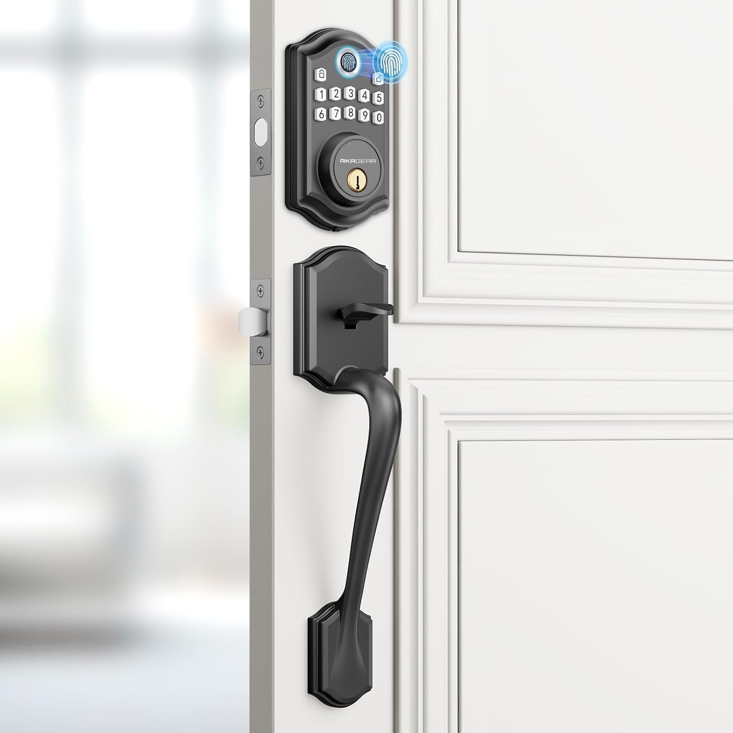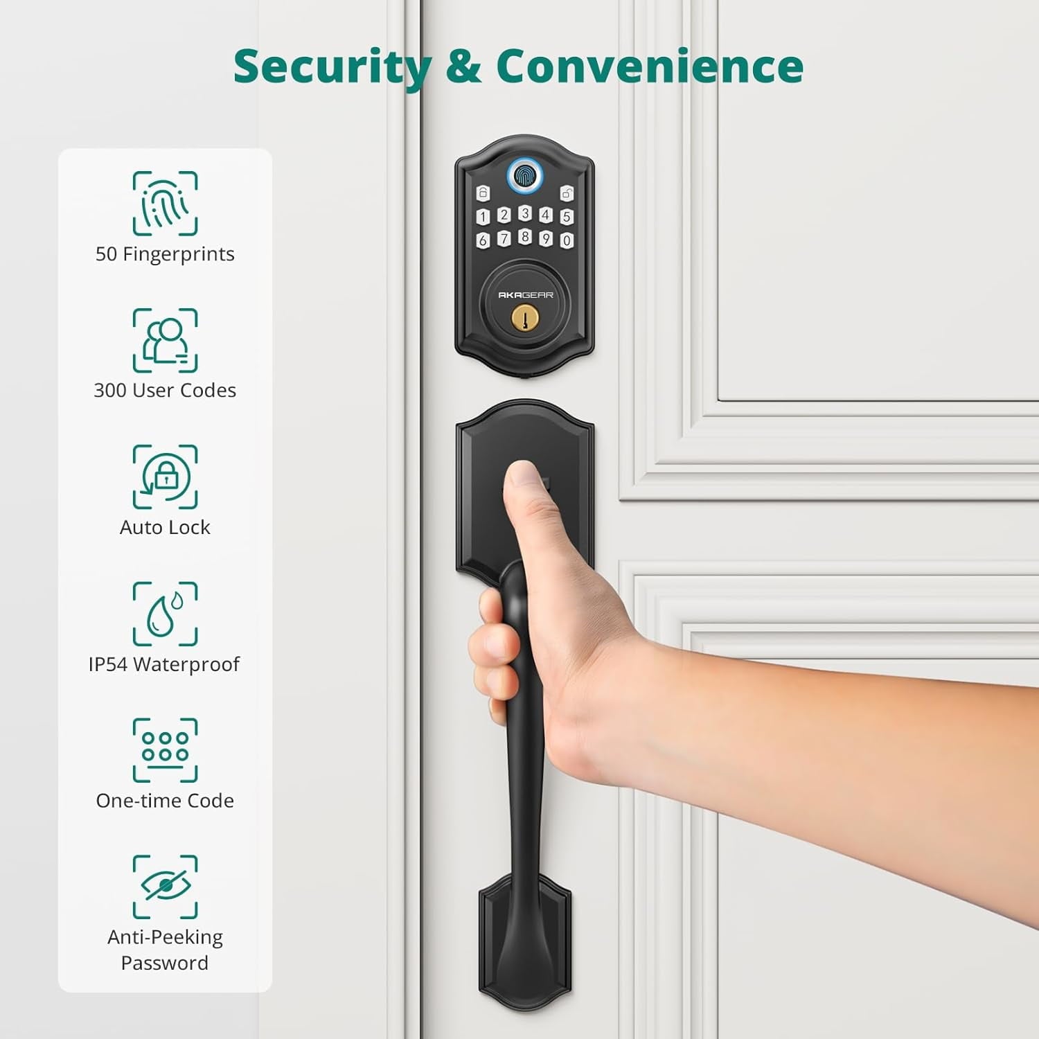 - 【Fingerprint & Passcode Unlock 】- Biometric technology fingerprint deadbolt identifies your fingerprint in 0.3 seconds and unlocks your door. Akagear handle lock set support up to 300 user codes and 50 set fingerprints. Real Keyless entry.