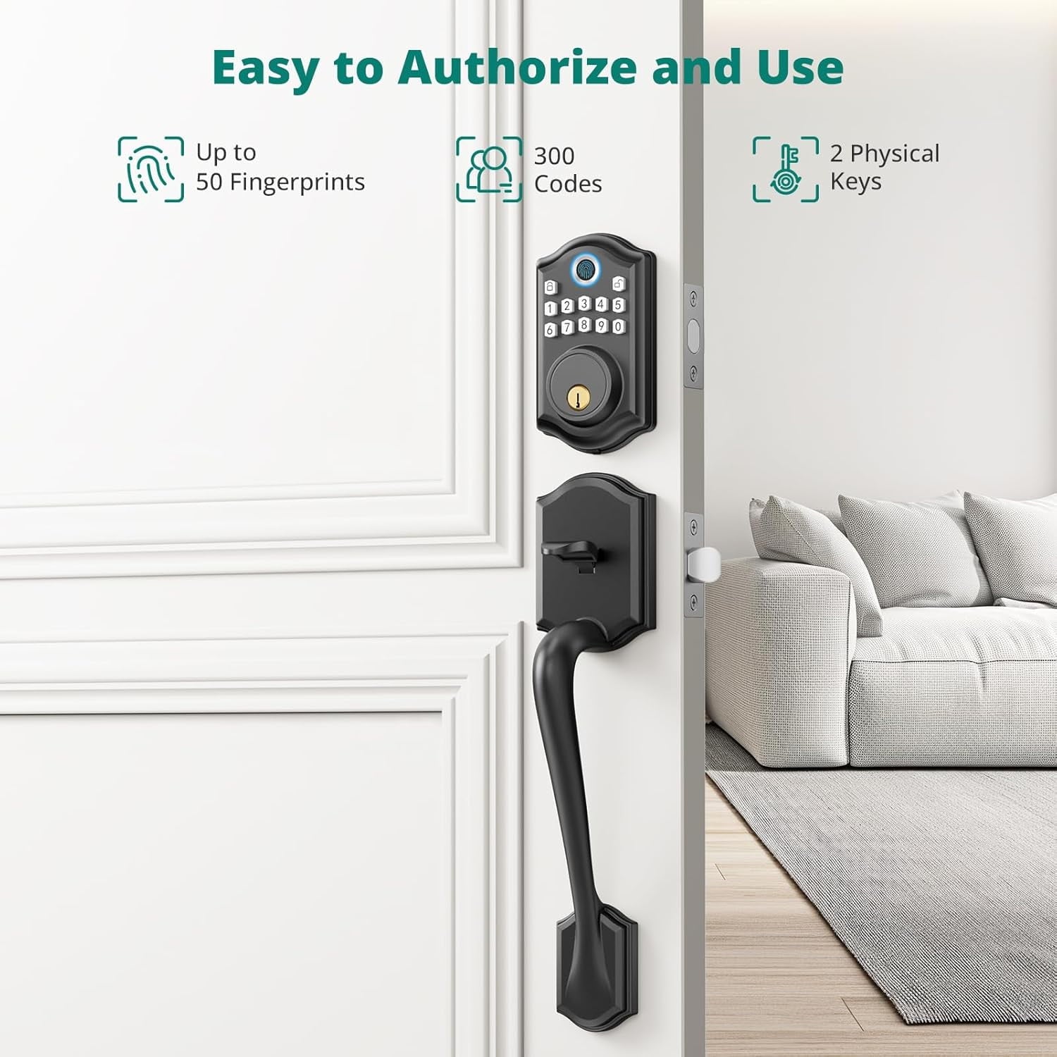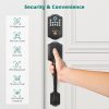 - Secure Fingerprint Unlock: The biometric fingerprint identification technology enhances security and allows users to unlock the door in one second without keys or cumbersome passwords. The smart door lock can store up to 50 user fingerprints, recognizing your fingerprint in just 0.3 seconds for effortless unlocking within 1 second.