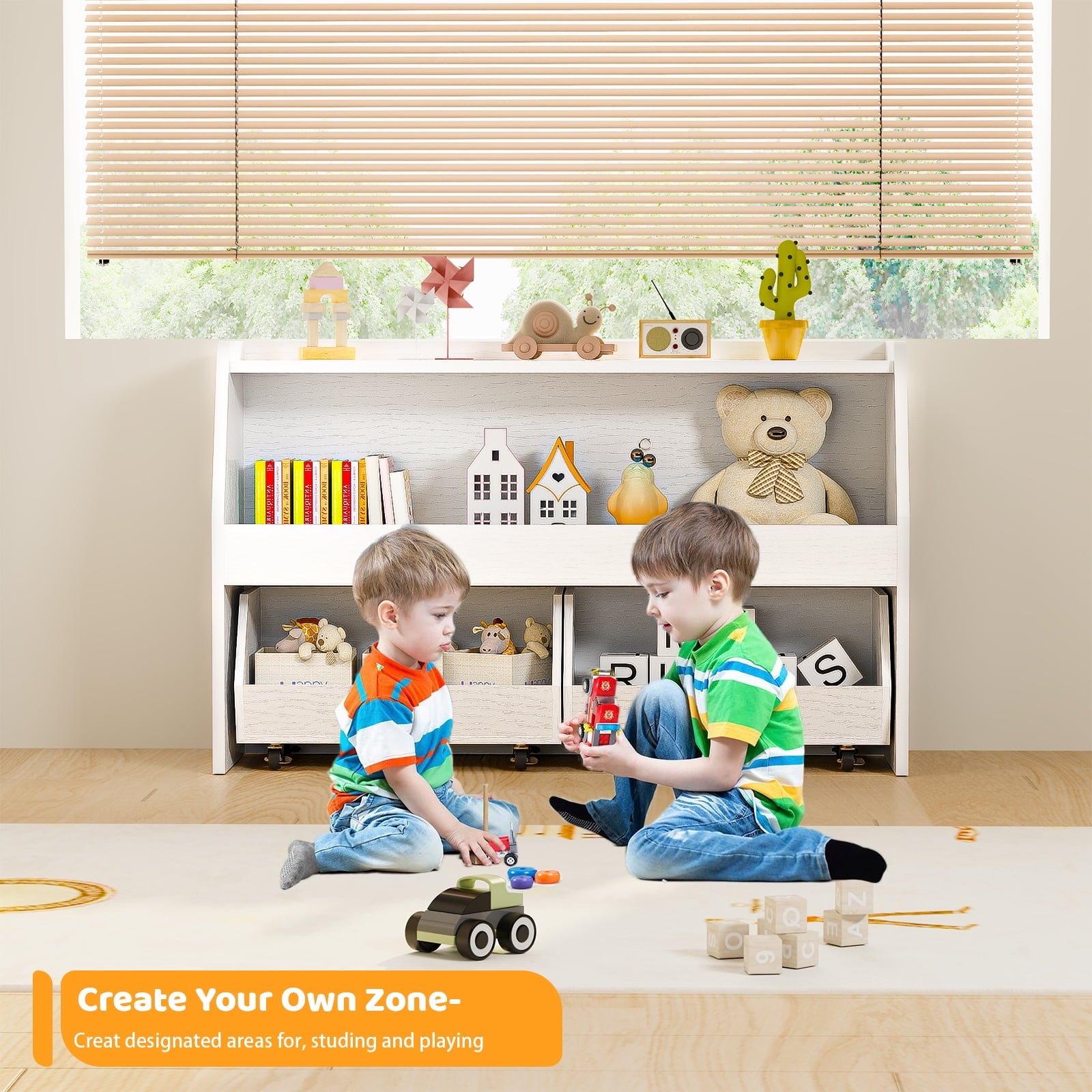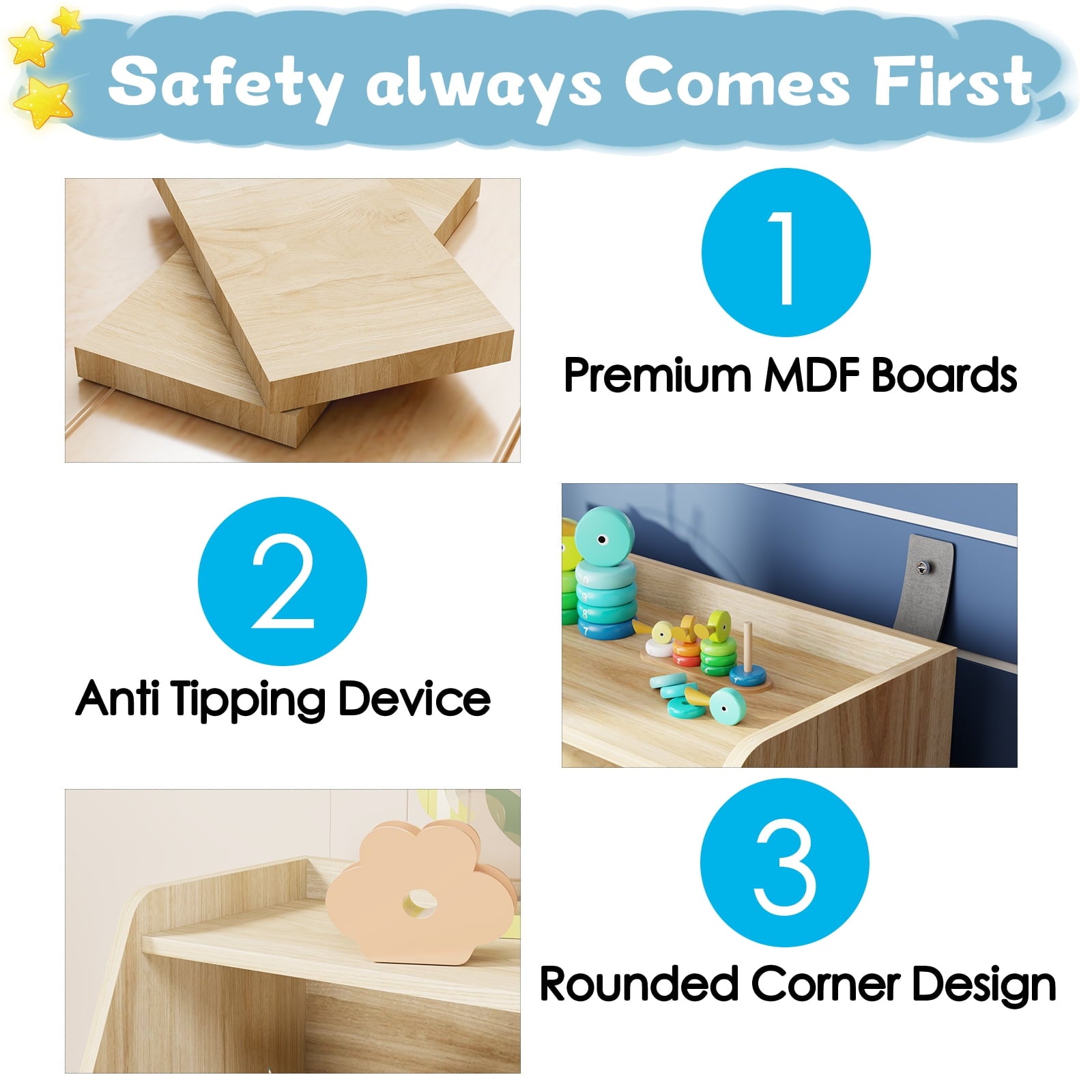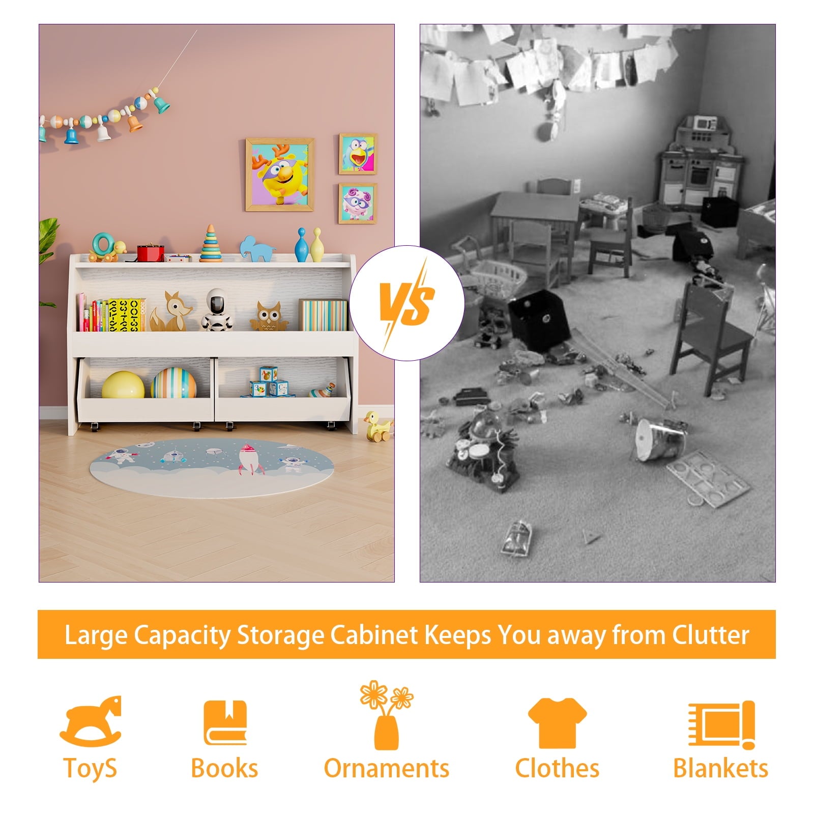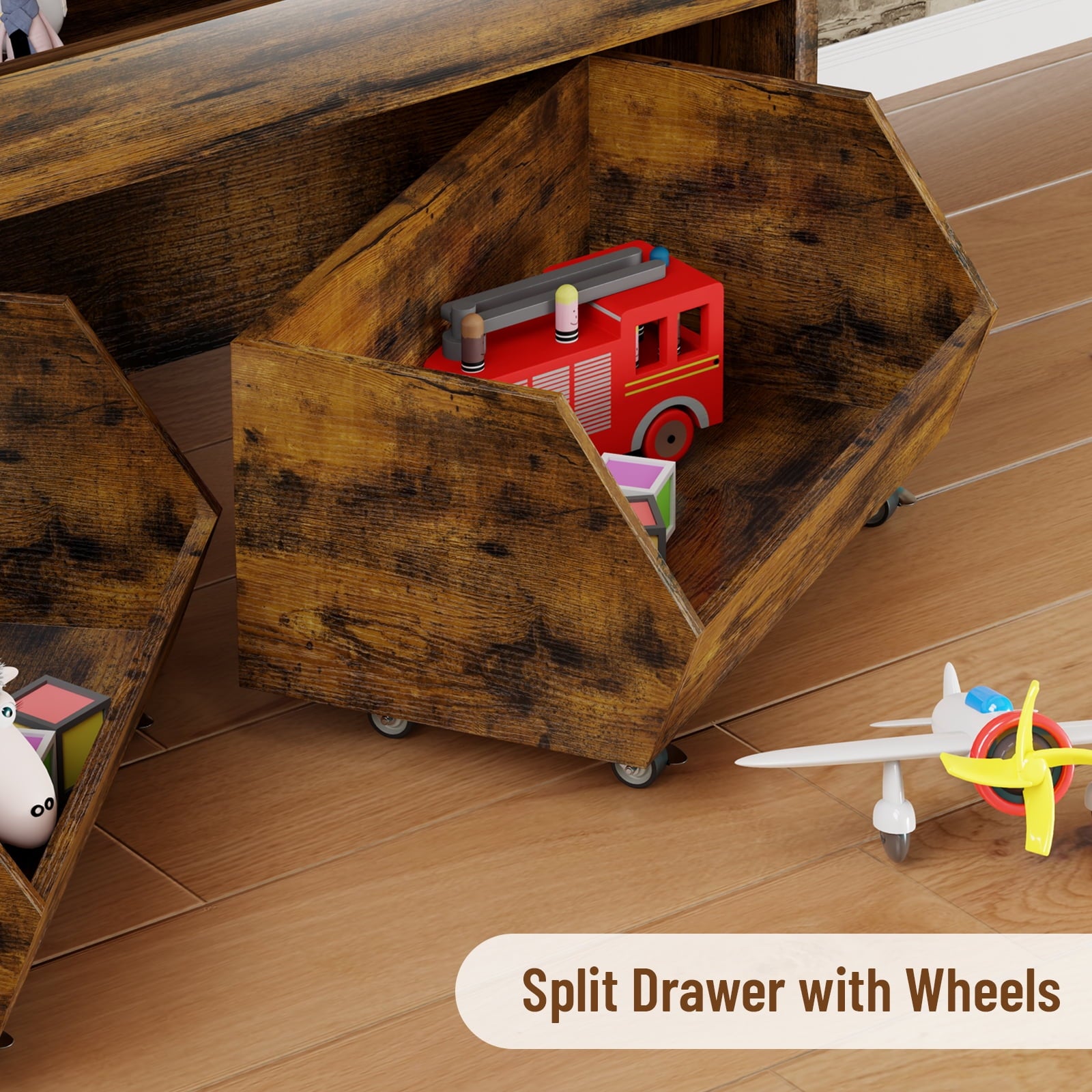 🧶 【WITH MOVABLE DRAWERS TOY SHELF】 – Make organizing a breeze! The drawers slide smoothly and easily, allowing your child to access their favorite toys and books with ease. They can even help with putting things away, fostering a sense of responsibility and independence.