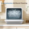 If you have a dishwasher, you can easily clean your kitchen dishes more easily and efficiently. By means of automation, dishwashers can complete a large number of dishes in a relatively short time, eliminating the tedious process of manual dishwashing. One obvious benefit of using a dishwasher is time savings, especially in a busy life, which provides you with more free time. Having a dishwasher not only improves the convenience of life, but also helps to keep the kitchen clean and hygienic, making the daily life of the home more comfortable and organized. Our portable dishwasher has a large capacity and can hold many types of dishes. 1-24 hour programmable timer saves you time. After your dishes are washed, our dishwasher can be vented for up to 18 minutes to remove moisture and odors, keeping your dishes dry.
