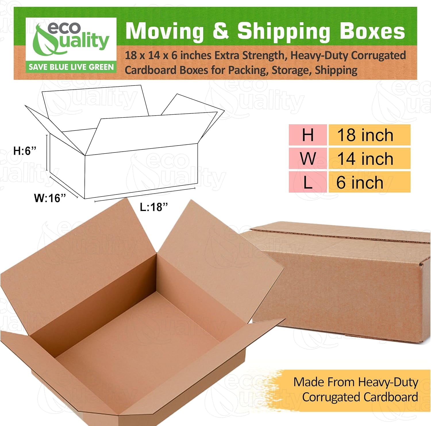 • Heavy-Duty: These 18x14x6 inches corrugated shipping boxes are made from durable, cardboard to securely pack, move, and ship heavy items like electronics, furniture, appliances, and bulk goods.