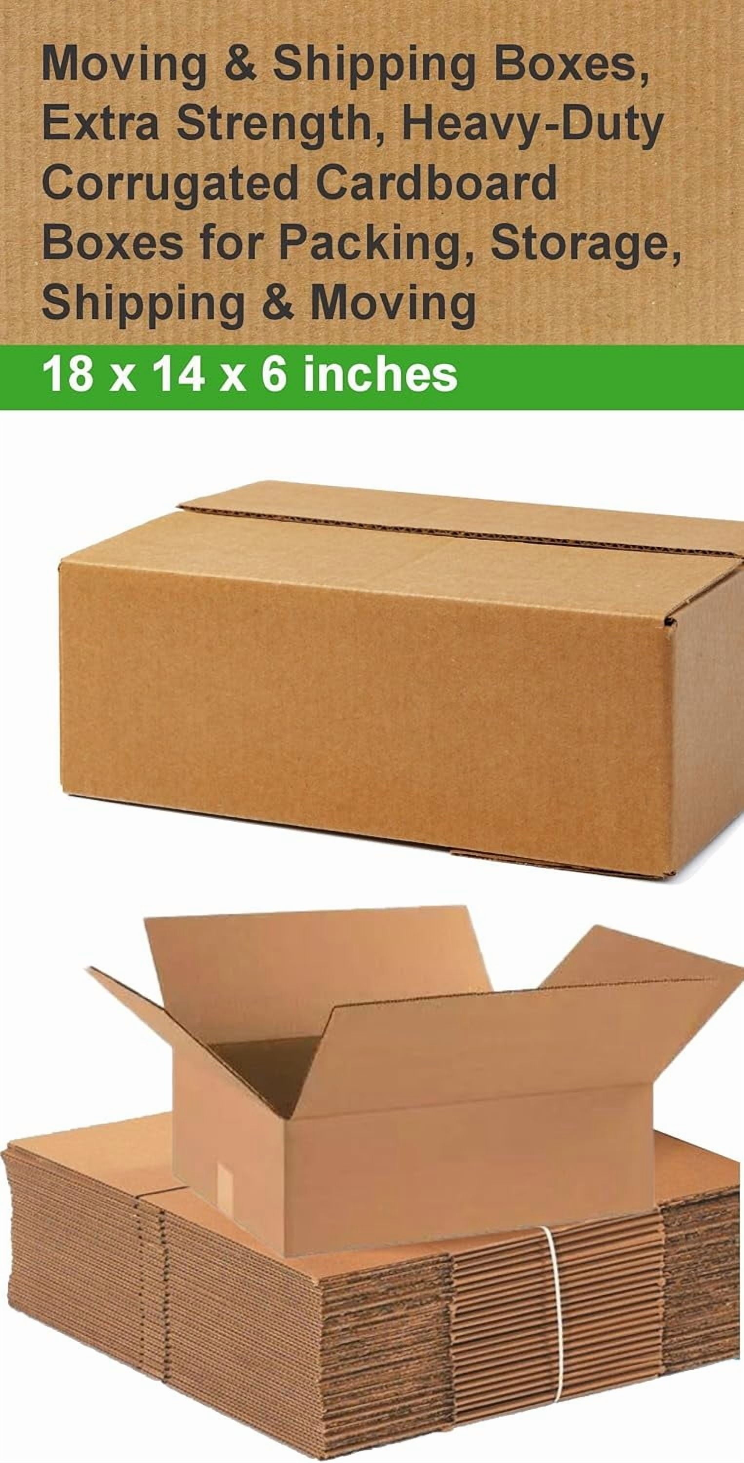 Home Packing & Shipping Boxes 18x14x6 Moving & Shipping Boxes, Extra Strength, Heavy-Duty Corrugated Cardboard Boxes for Packing, Storage, Shipping, Transport, Commerce (25)