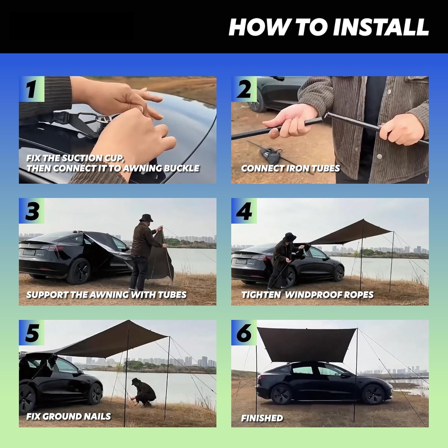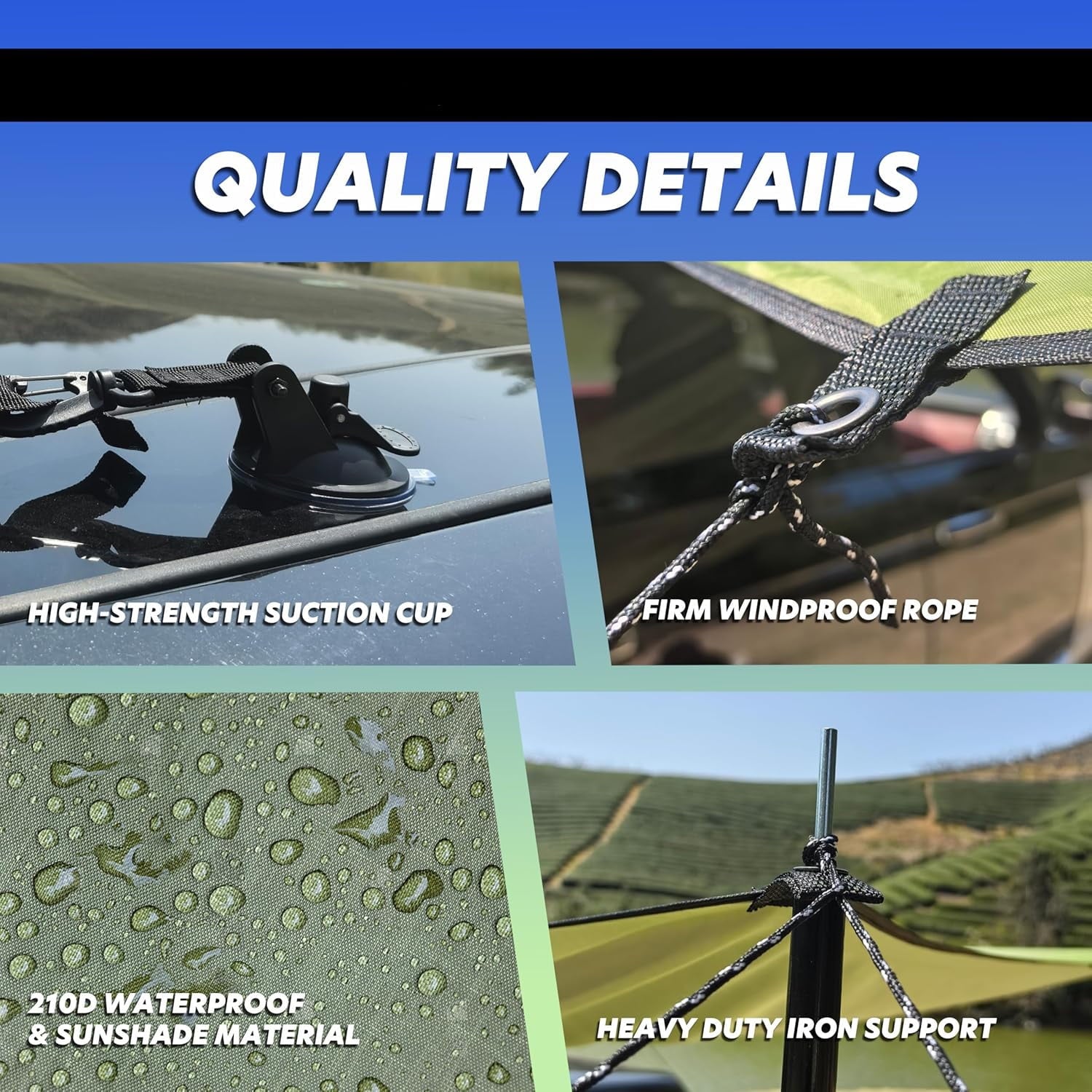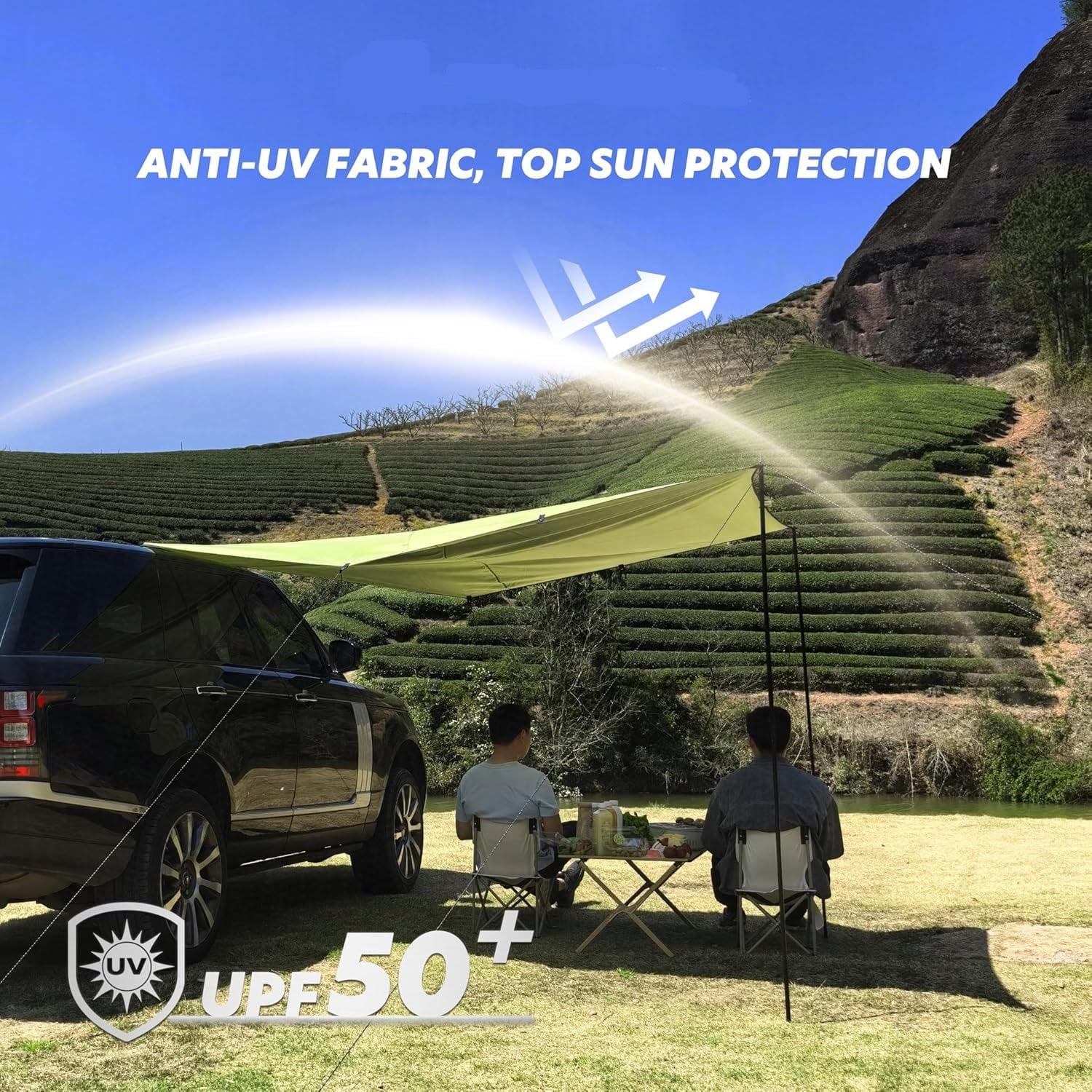 • Experience the outdoors with our generously-sized car awning, providing ample shelter for your camping adventures. Perfect for setting up a cozy spot wherever you park your vehicle. SUPERIOR WATERPROOF & SUN PROTECTION: Our car awning for camping is crafted from high-quality 210D polyester silver-coated fabric, offering a remarkable PU 5000mm waterproof rating and UV 50+ sun protection, ensuring you stay safe and sheltered in any weather condition.