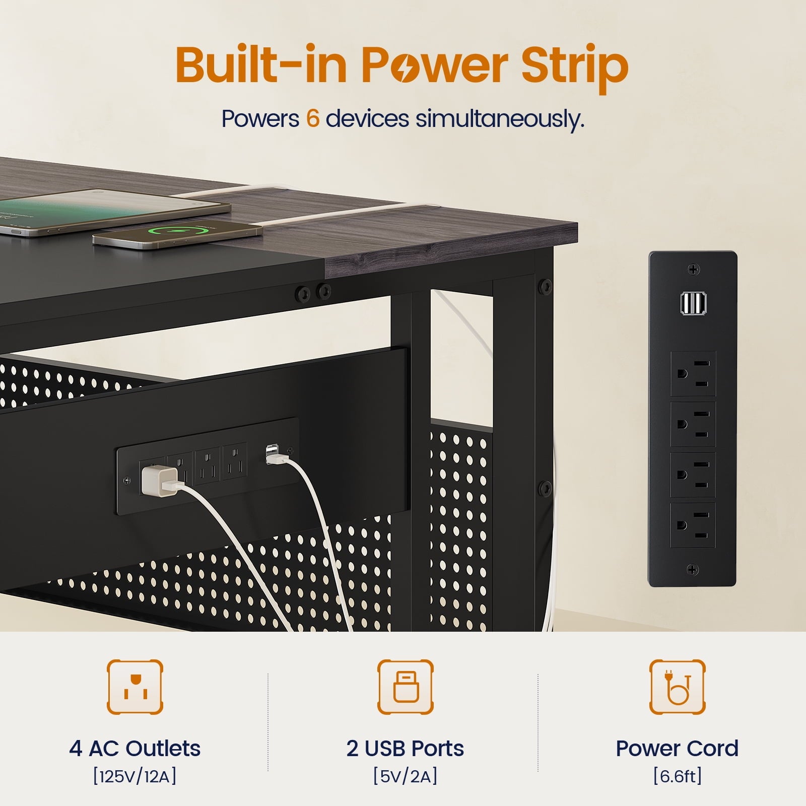 - 【Convenient Charging Station】The executive desk is equipped with 4 plug outlets and 2 USB ports to provide power for up to 6 devices simultaneously, including mobile phones, printers and other electronic devices.