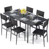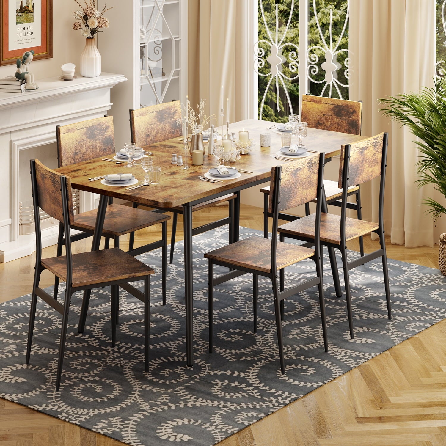 The Aiho 7-piece large Dining Table Set with 6 seats is perfect for an open kitchen or cozy dining room, providing a comfortable dining experience for you and your guests. The workgroup components are designed using high-quality materials such as MDF, which are sturdy, stylish, and durable. The seat and backrest are ergonomically designed, allowing you to sit for long periods of time without feeling tired. The tabletop is smooth and easy to clean, and the dining chairs can be moved under the table when not in use, which can save you a lot of space. All parts are provided in the package, and assembly tools are also included. By following the detailed instructions, you can easily assemble the table and chair set.