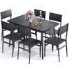 • Our 7-piece retractable dining table set can be easily expanded and contracted. Table Dimensions: 63″L x 27.5″W x 30″H (extended), fits 6; 47.5″L x 27.5″W x 30″H (regular), fits 4; Chairs: 15.7″L x 15.7″W x 34.5 inches high. Load-bearing capacity: Table: 300 lbs, Chair: 300 lbs