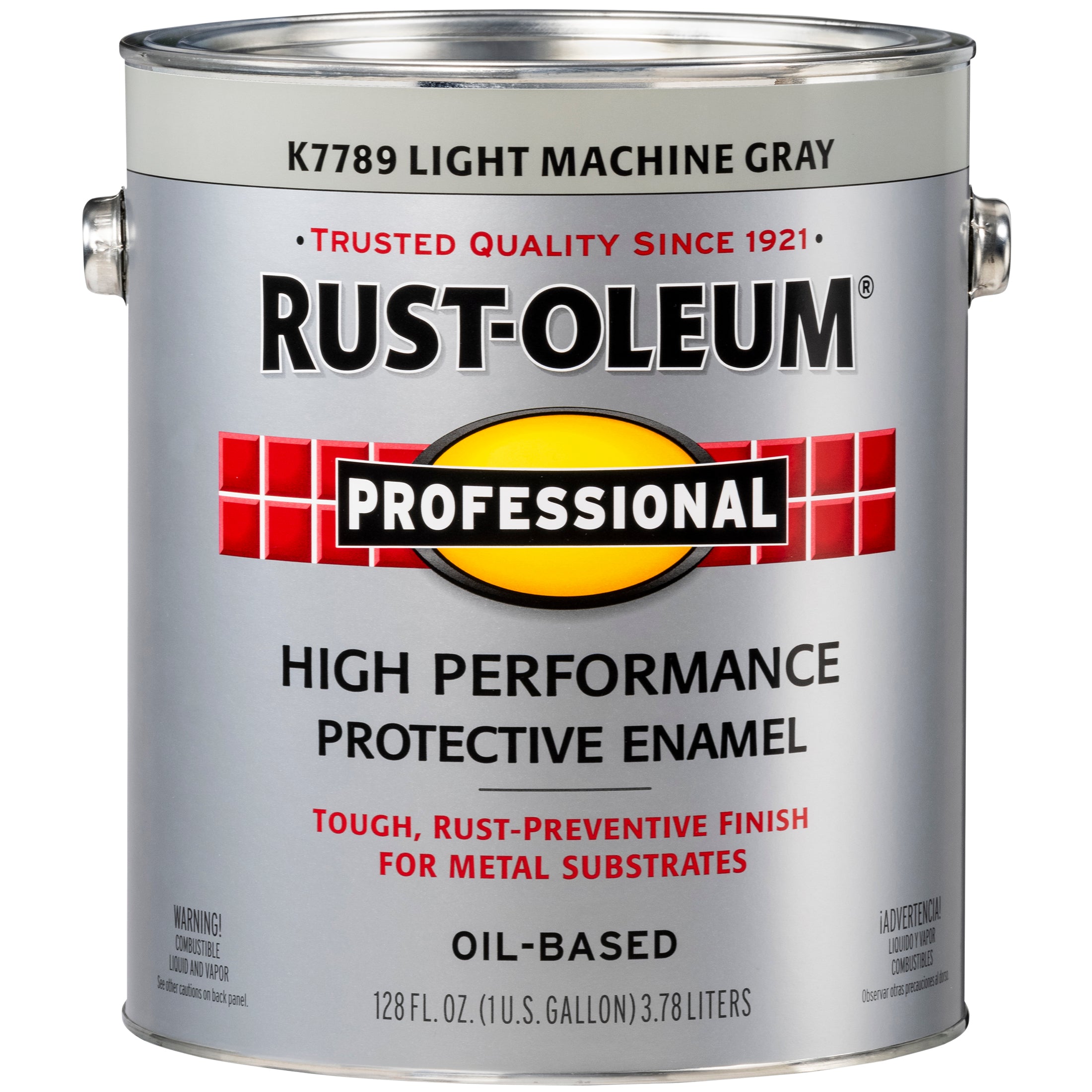 2 Pack, Light Machine Gray (400 Voc), Rust-Oleum Professional High Performance Gloss Protective Enamel- Gallon: Provide superior coverage, hiding and corrosion protection. They can be applied to metal, wood, concrete and masonry. Designed to resist abrasion, prevent corrosion, and retain its color in the toughest environments. They also offer excellent coverage, chip resistance and color retention. Dries to the touch in as little as 4 hours and can be cleaned up with mineral spirits. Not for use on galvanized steel.