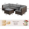 ✅1*Outdoor Couch:2 corner patio chairs + 4 armless patio chairs + 1 tempered glass coffee table+14 removable cushions