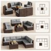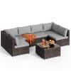 This 7-piece sectional outdoor furniture set includes 2 corner chairs, 4 armless chairs, 1 tempered glass coffee table, and 14 cushions, offering versatile L-shaped configurations that easily adapt to any space. The interlocking fastener system keeps pieces securely in place whether you’re creating an intimate conversation area or an open entertaining layout.