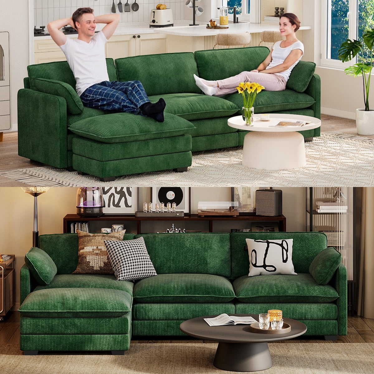- – Comfortable Corduroy Fabric = Indulge in the luxurious feel of our premium corduroy fabric, elevating the overall comfort of this sectional sofa while adding a stylish touch to your decor.