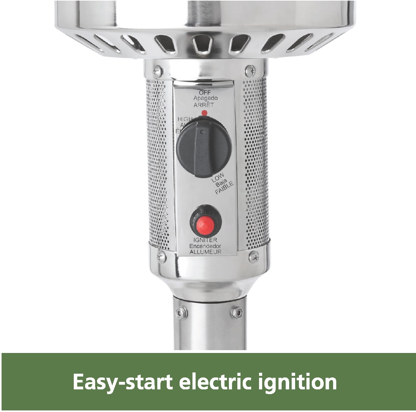 The Mainstays 48,000 BTU Outdoor Propane Gas Patio Heater is the ultimate solution for extending the comfort and usability of your outdoor living space. Built with a sleek freestanding stainless steel frame, this premium patio heating solution combines durability with a timeless design that enhances any backyard, patio, poolside, or beach setting. Whether you are entertaining guests or enjoying a quiet evening outdoors, this propane patio heater delivers consistent warmth and style. With its traditional home décor styling, the heater integrates effortlessly into existing patio furniture arrangements and outdoor décor. Standing at an impressive 86.6 inches tall, it makes a striking visual statement while providing powerful heat coverage. Designed for convenience, the unit uses a standard 20 lb propane tank (not included), easily accessed through a single front-opening door for quick replacement and hassle-free refueling. Maintenance is just as effortless as operation. At the end of the season, or anytime you wish to refresh your outdoor space, simply wipe the stainless steel surface with a cloth and warm water, then allow it to air dry. This easy-care design ensures that your outdoor heater remains in excellent condition year after year. Perfect for backyard gatherings, family celebrations, and outdoor entertaining, the Mainstays 48,000 BTU Propane Gas Patio Heater allows you to comfortably host larger groups well into cooler months. For expansive areas, consider adding multiple units to create a consistently warm and inviting atmosphere across your entire patio or deck. Bring home the Mainstays Outdoor Propane Patio Heater today and experience a stylish, reliable, and long-lasting way to maximize the enjoyment of your outdoor living spaces. The Model number is MSF328059664030. For Customer service, please call 1-866-905-4107.