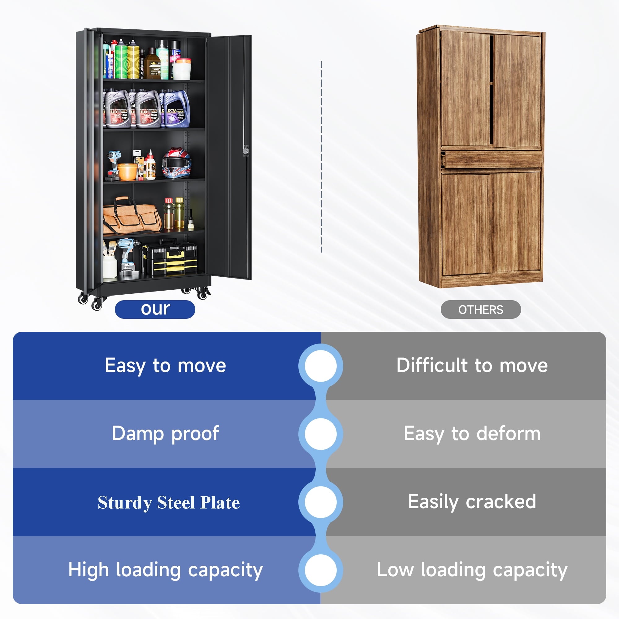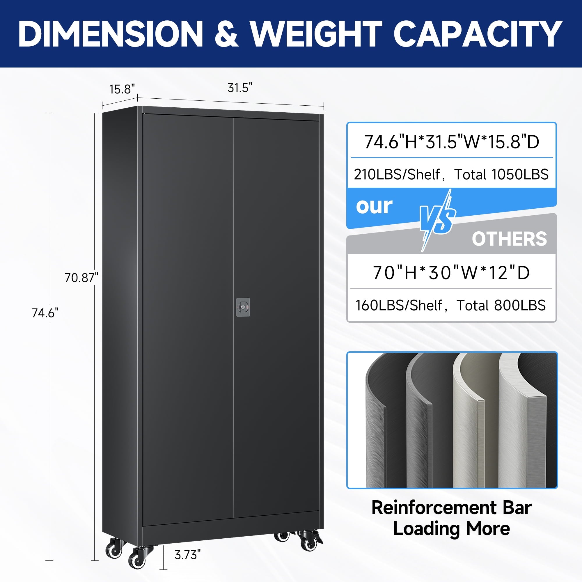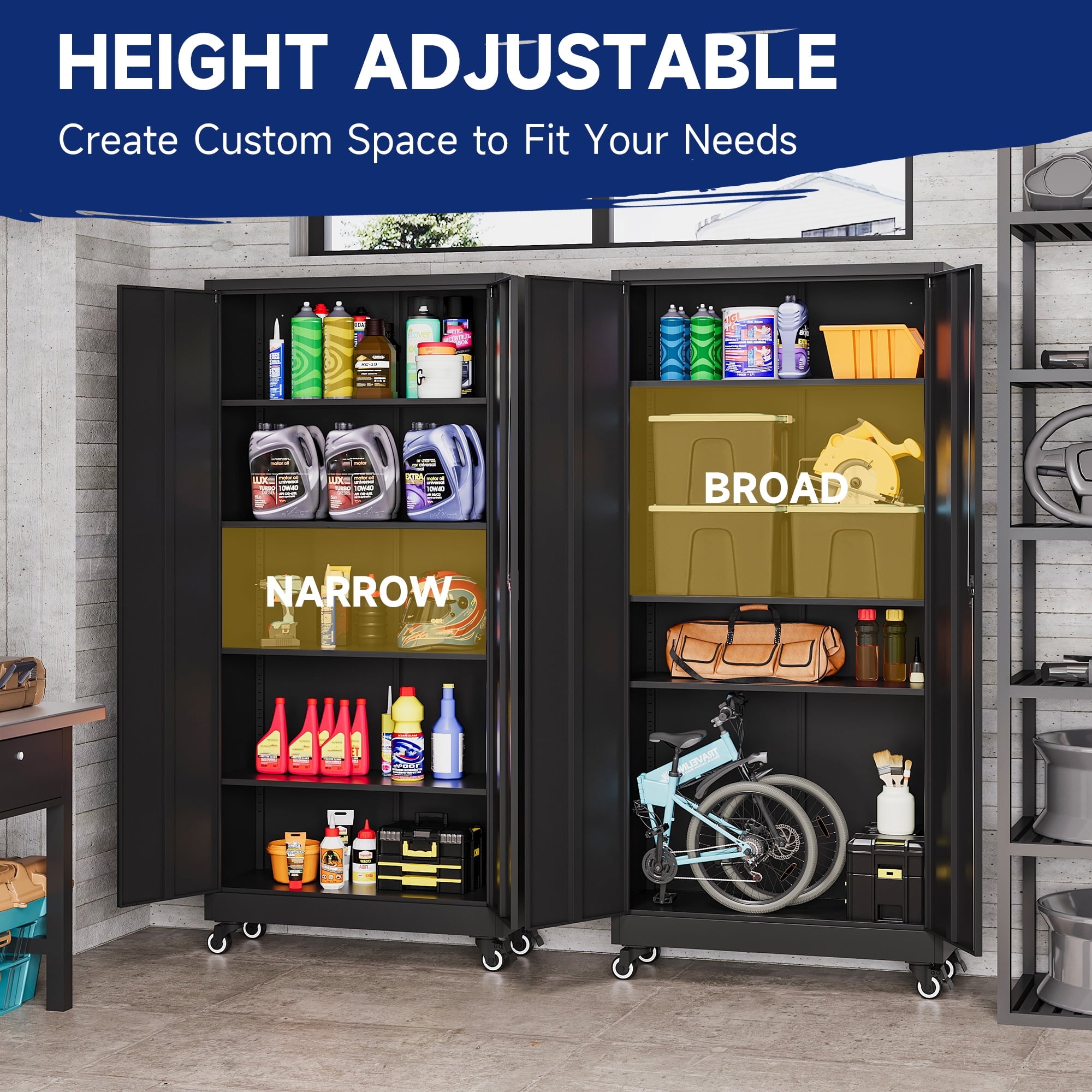 AUHUP 73 inch tall metal cabinet with wheels and 4 shelves is a great solution for your storage needs!