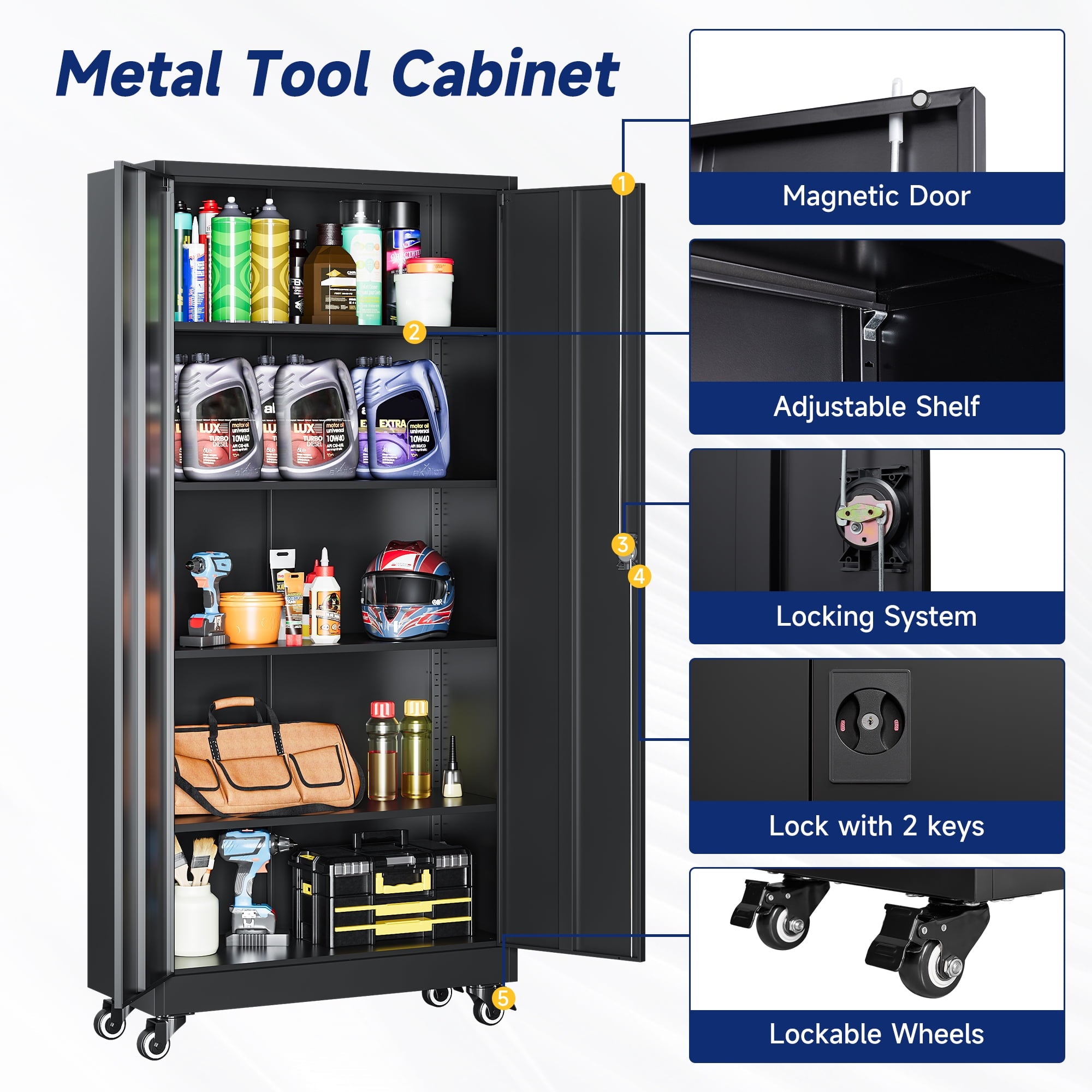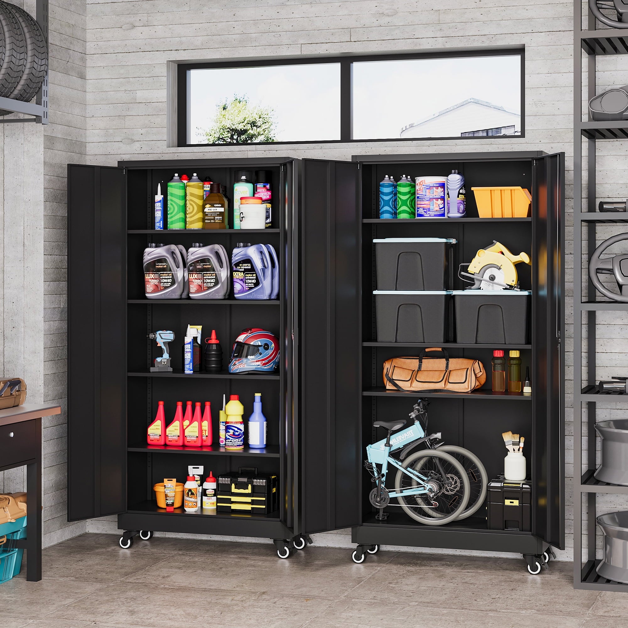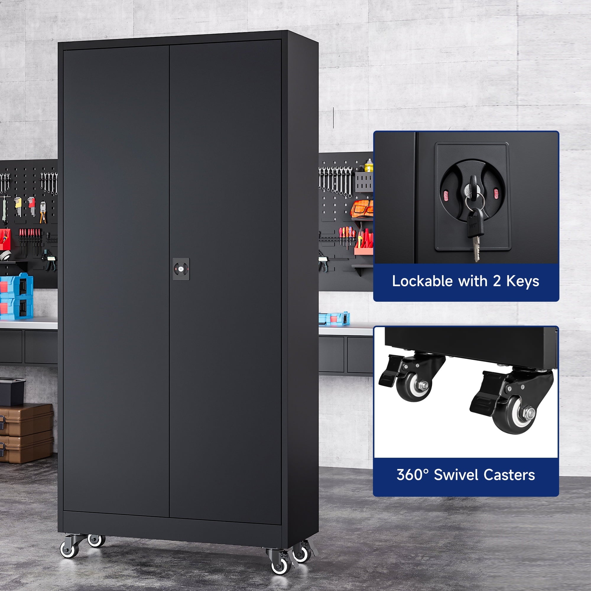 AUHUP 73 inch tall metal cabinet with wheels and 4 shelves is a great solution for your storage needs!