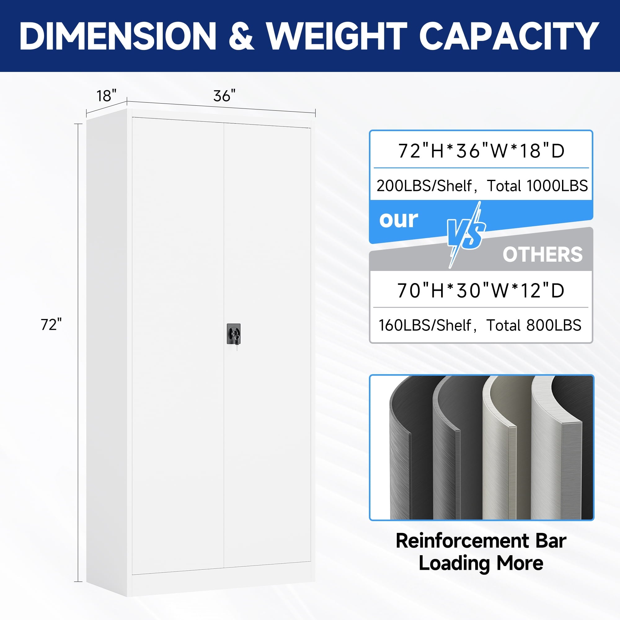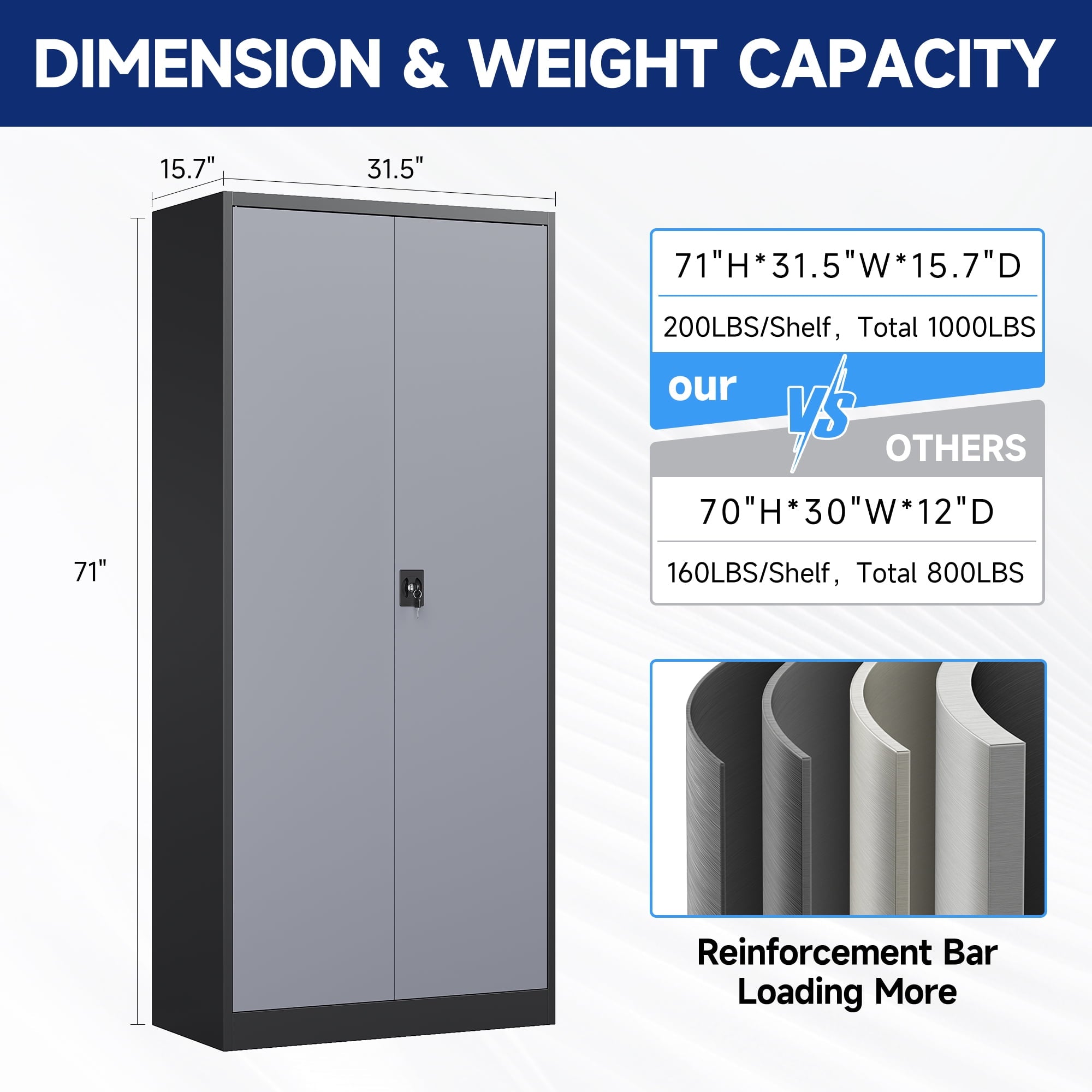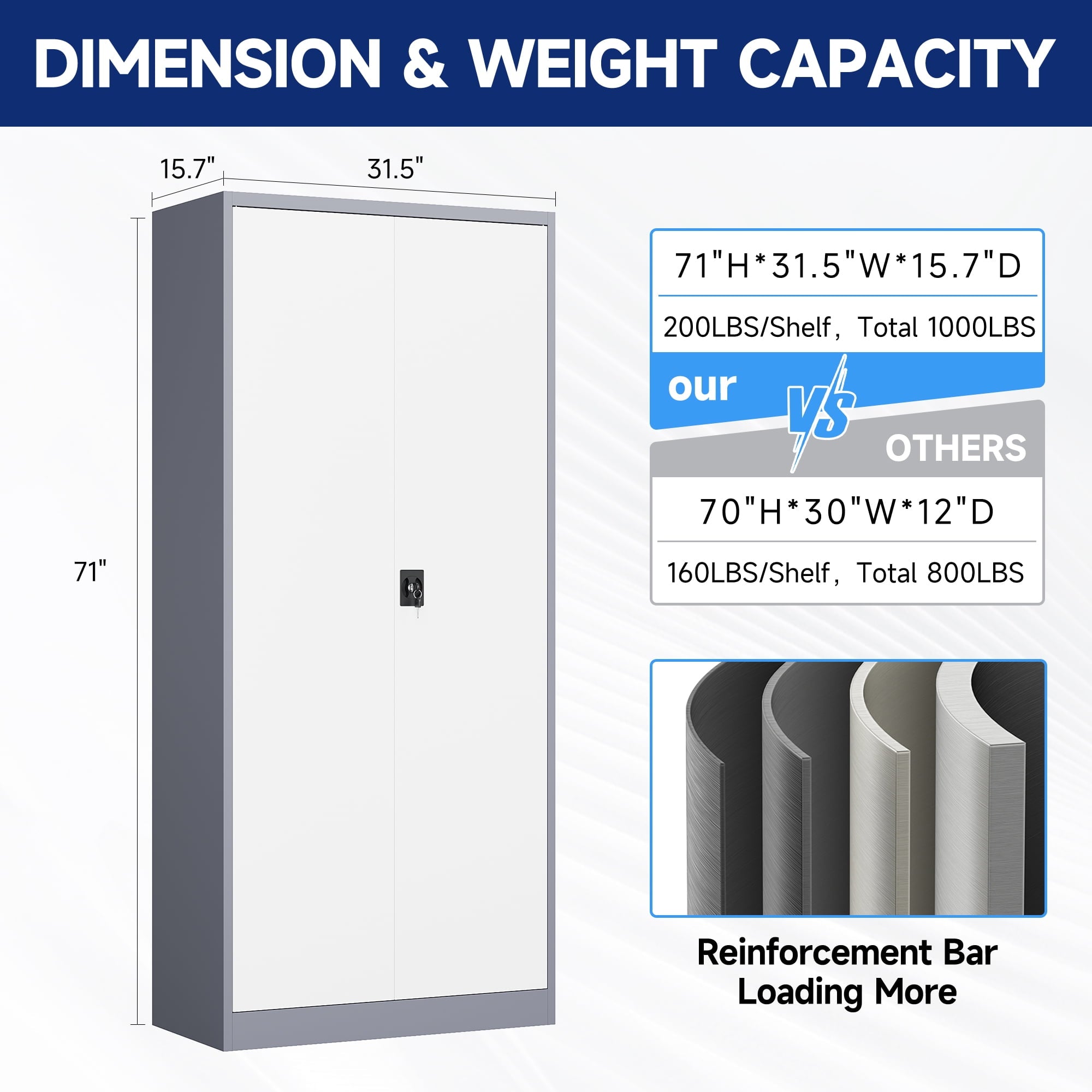 - 『Large Storage Space』Moveable metal storage cabinet total dimensions: 73″H x 32″W x 16″D, suitable for storing office documents, garage tools, miscellaneous items and so on. Perfect for home, office, garage, utility room, warehouse, workshop, suitable for many scenarios