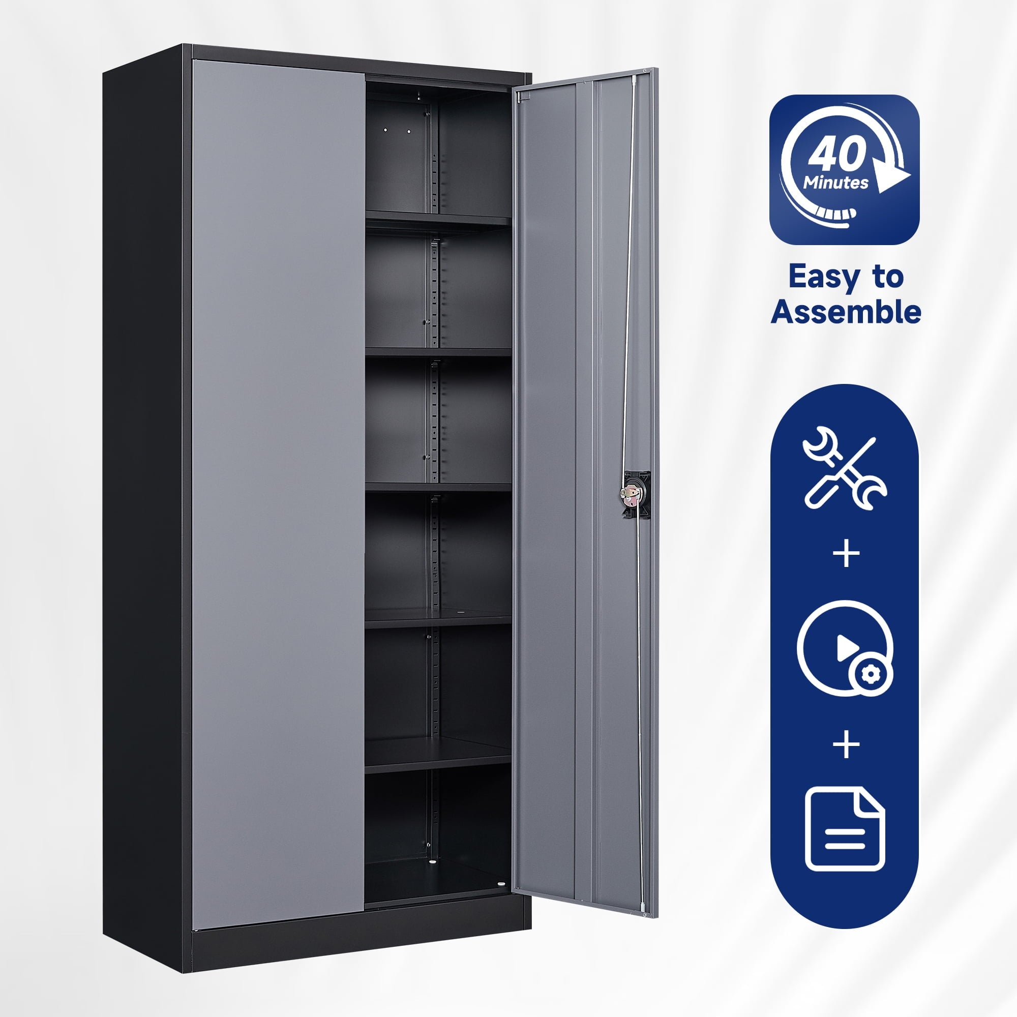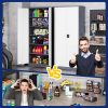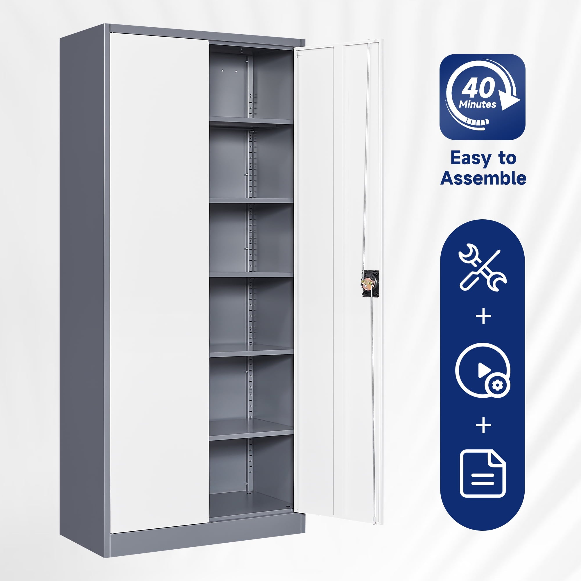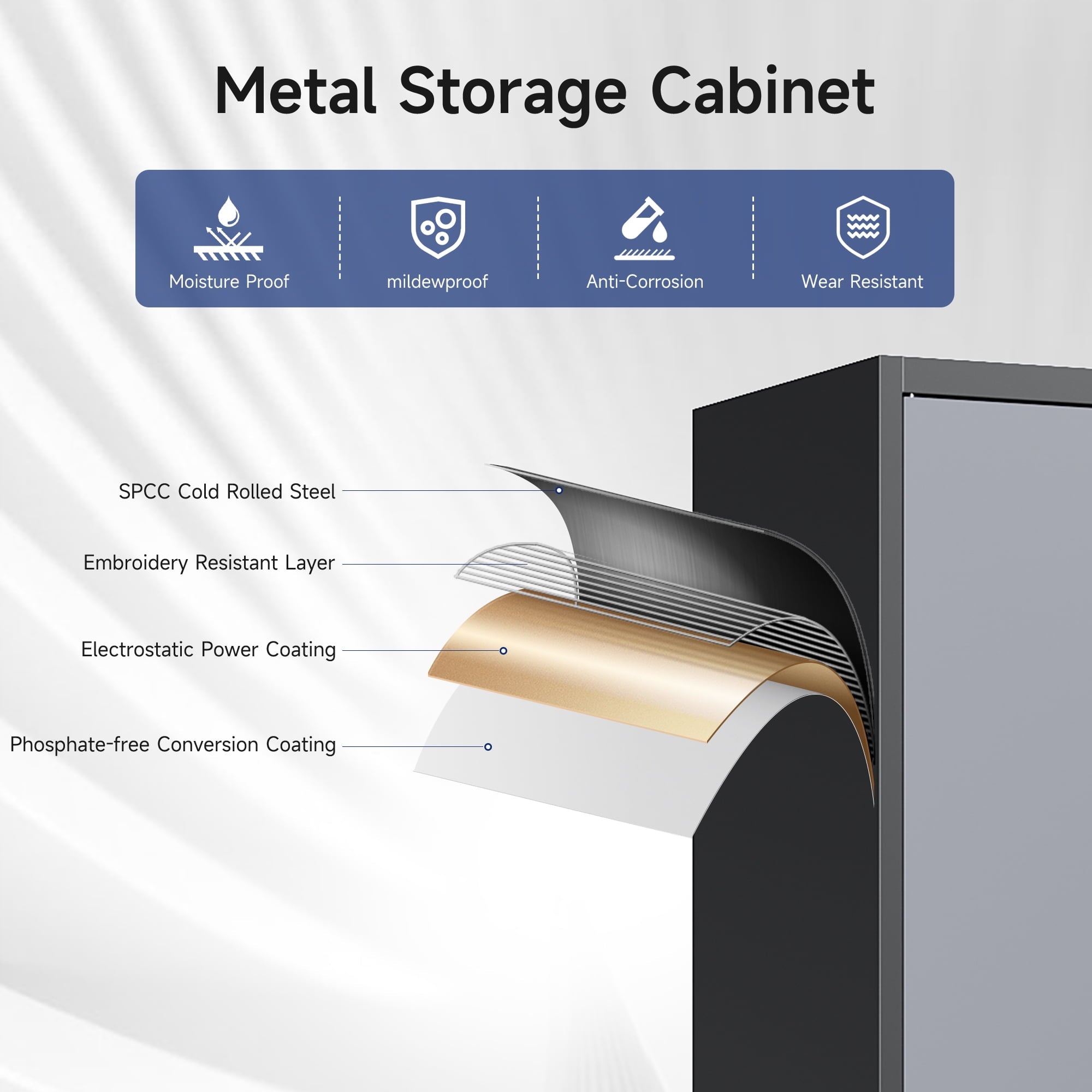 - 『Large Storage Space』Moveable metal storage cabinet total dimensions: 73″H x 32″W x 16″D, suitable for storing office documents, garage tools, miscellaneous items and so on. Perfect for home, office, garage, utility room, warehouse, workshop, suitable for many scenarios