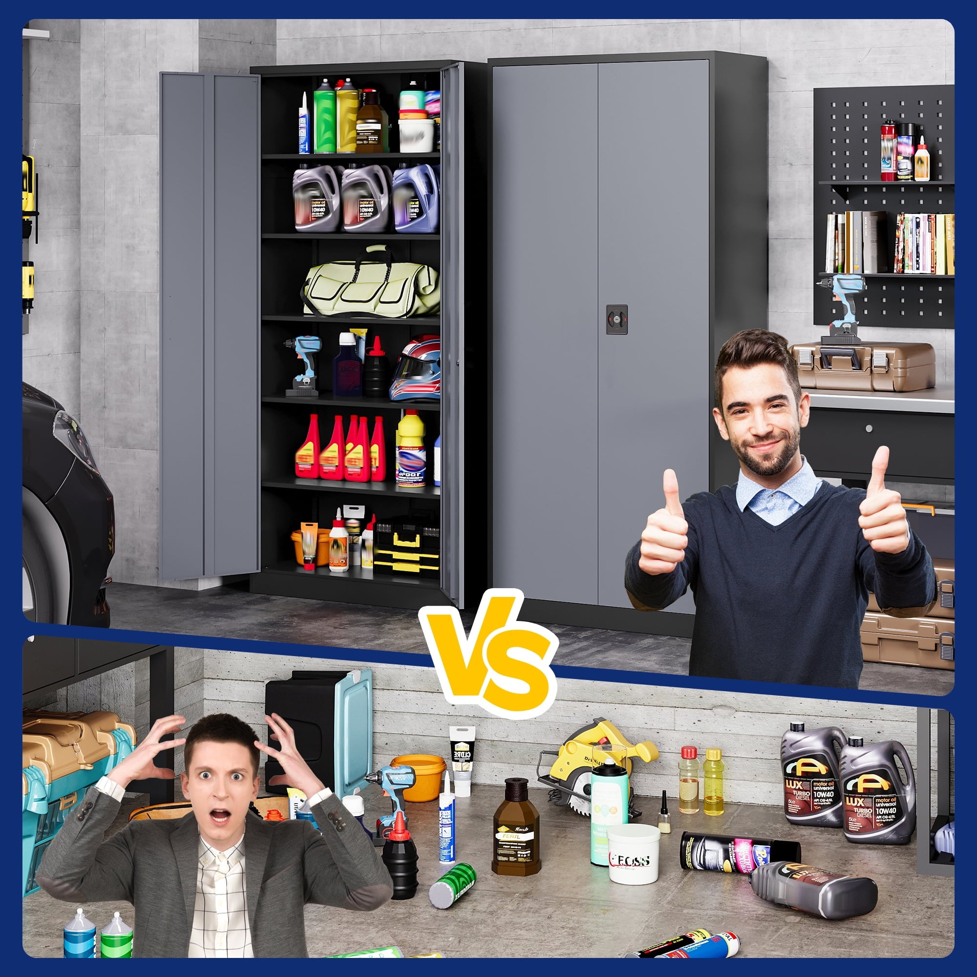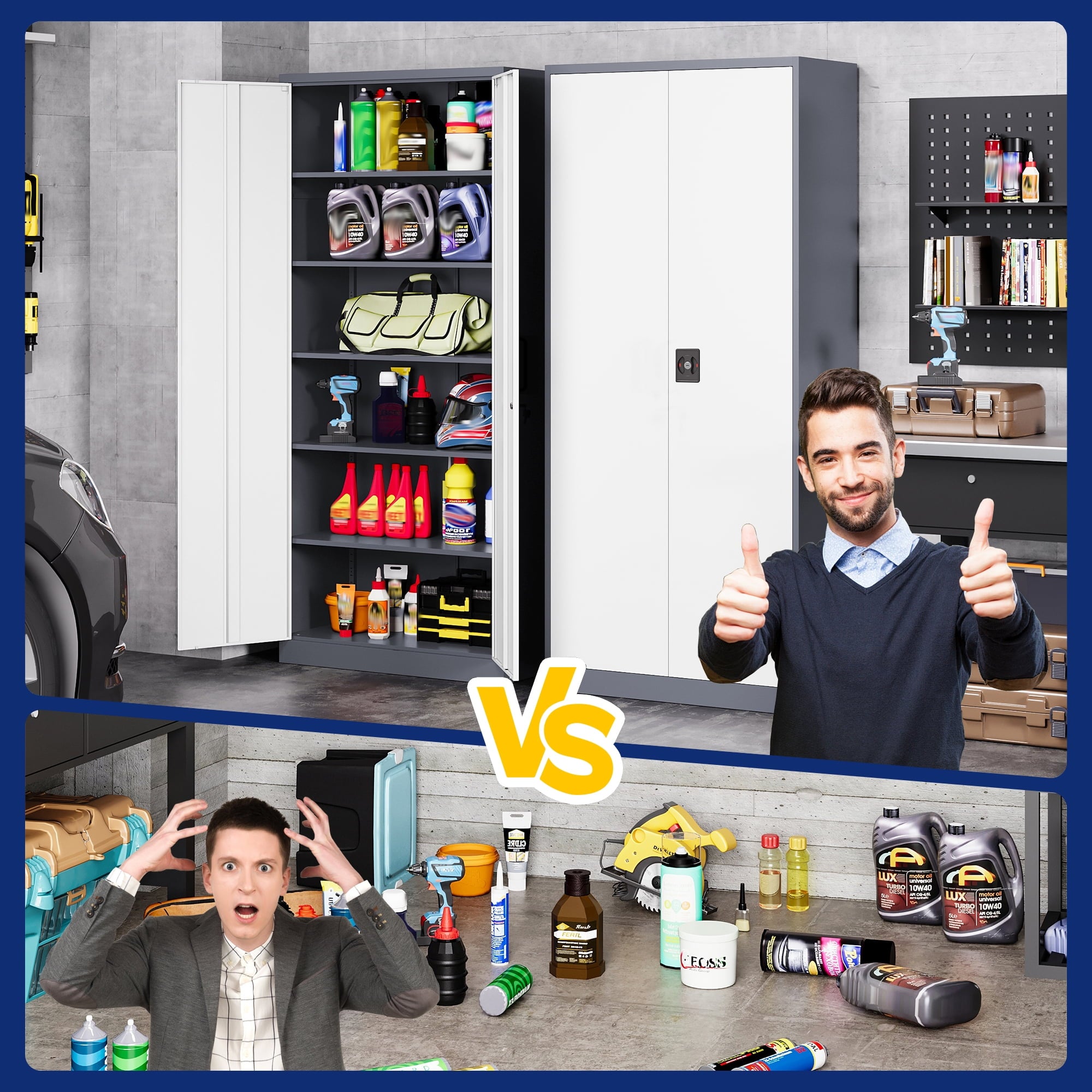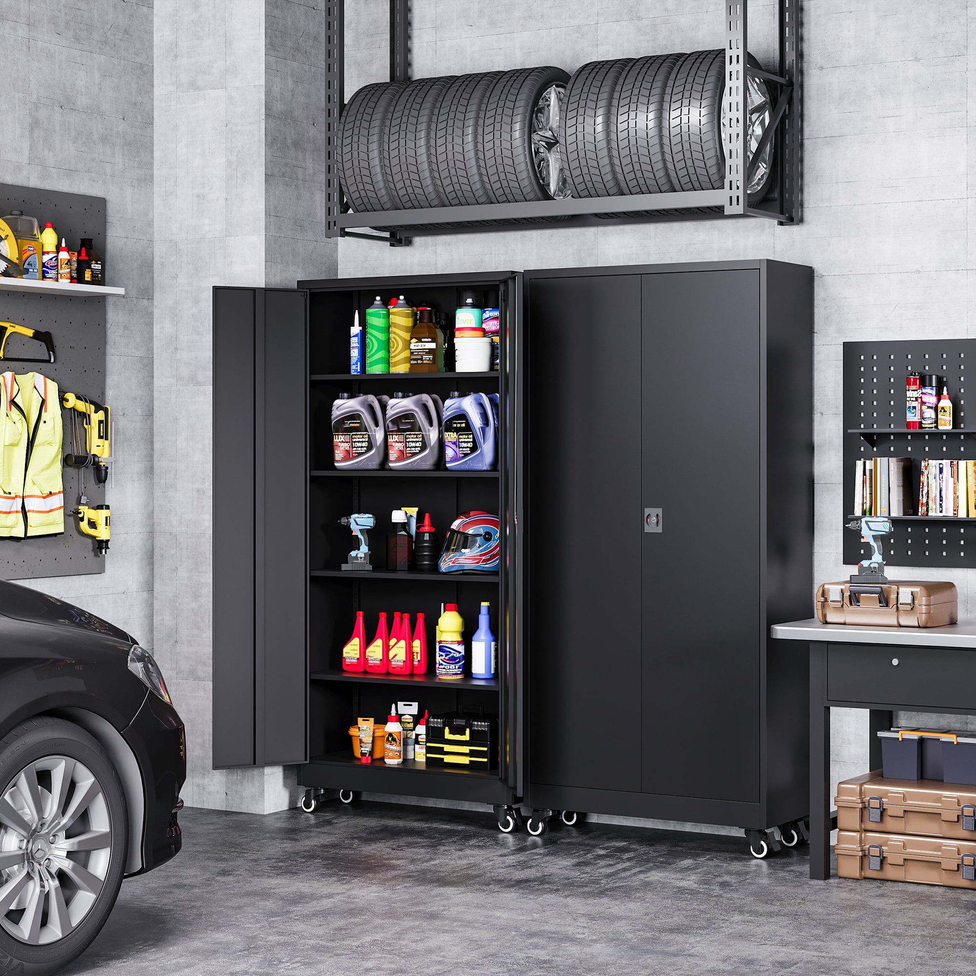 - 『4 Casters』This garage storage cabinet has 4 wheels that can swivel 360°, you can easily move it wherever you want.2 wheels can be locked to make sure the cabinet stays in place without having to worry about losing control
