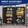 - 『4-layer Adjustable Shelves』When items are evenly distributed, each shelf can withstand up to 150 pounds of weight, and these shelves are made of metal frames that are sturdy and durable. You can adjust the spacing of each shelf according to your needs, whether you want to store office files, garage tools, or other large and heavy items, there is no problem