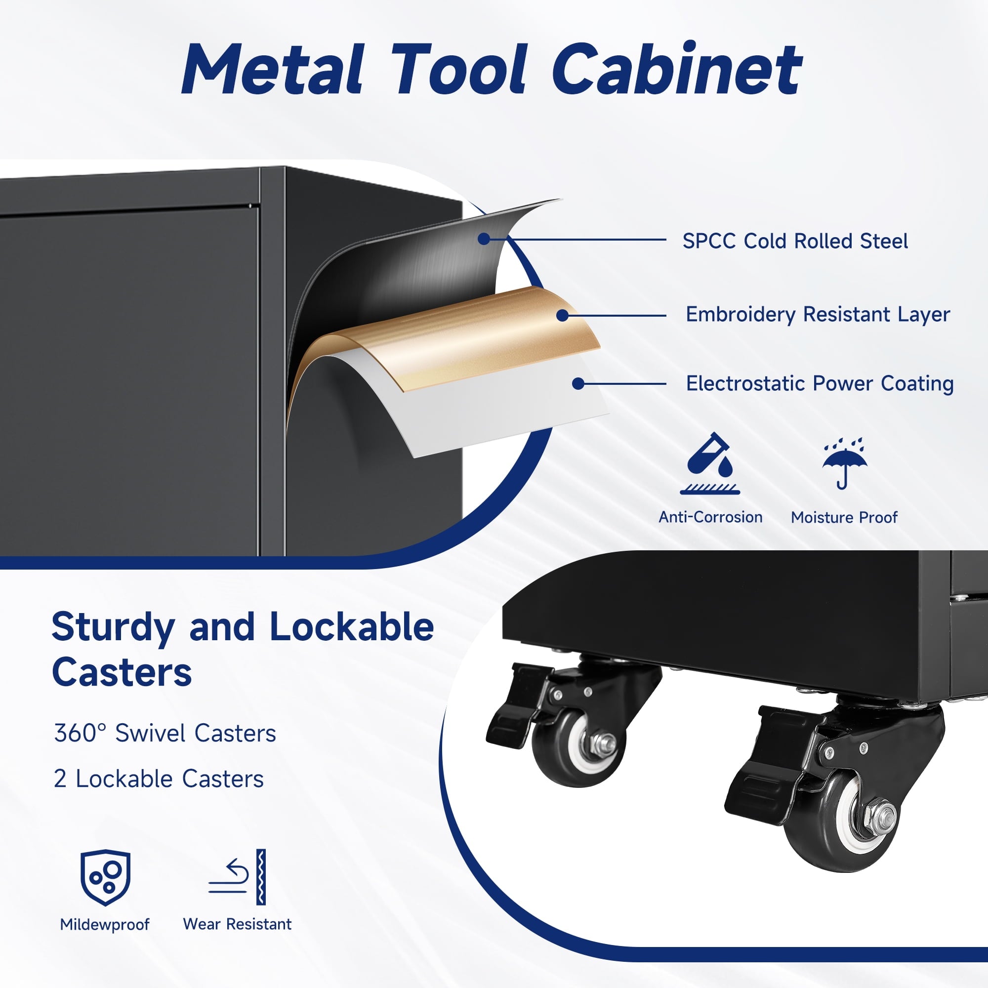 ➢This movable tool storage cabinet is perfect for any space where you may need to organize items, such as garages, basements, utility rooms, home offices, warehouses or other places. If you are looking for a storage cabinet that is mobile at all times, this would be a good choice!