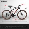 - 【21-Speed with Disc Brakes】Thumb shifter help to switch gears with smoothness. Simple operation allows for quick selection of gears for various terrains. Mechanical dual disc brake system, simple structure and convenient for maintenance.