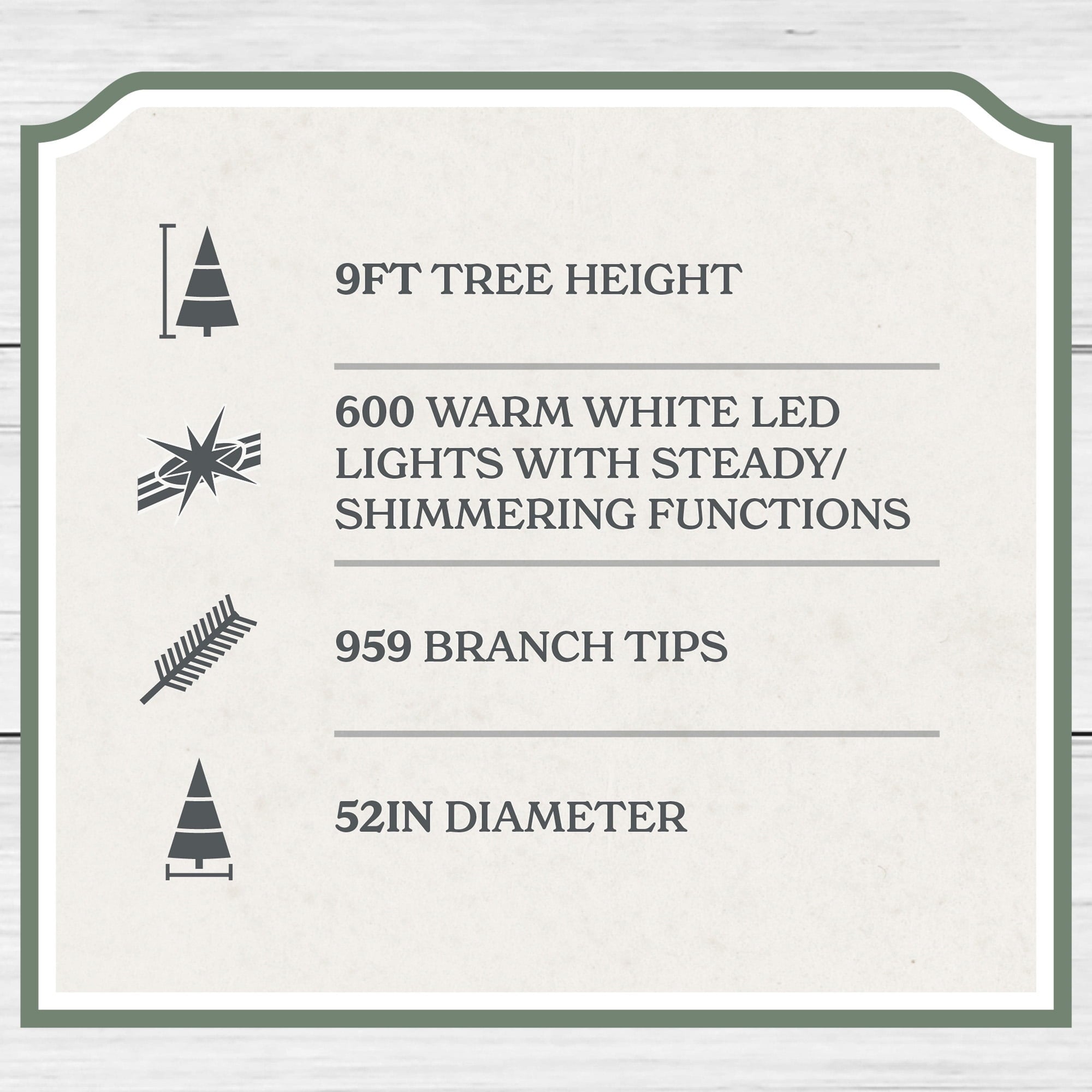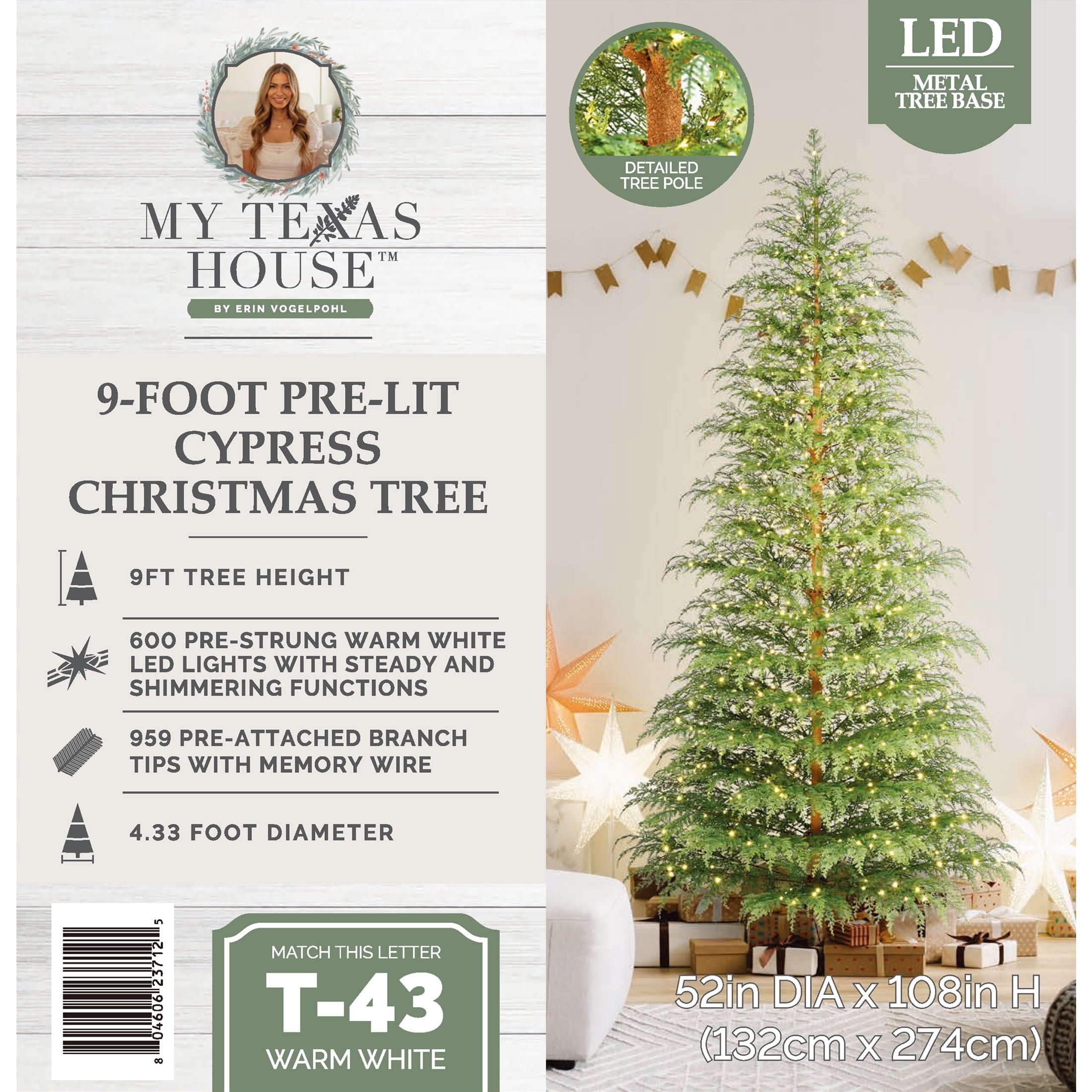 • My Texas House 9′ Pre-Lit Green Cypress Artificial Christmas Tree with 600 Warm White Twinkle LED Lights