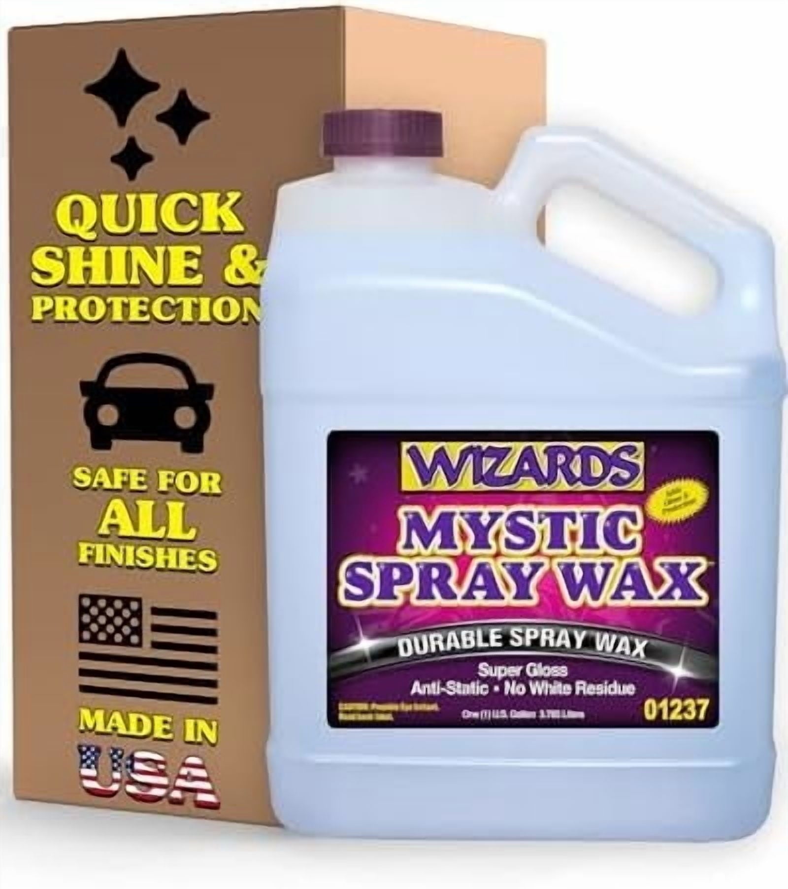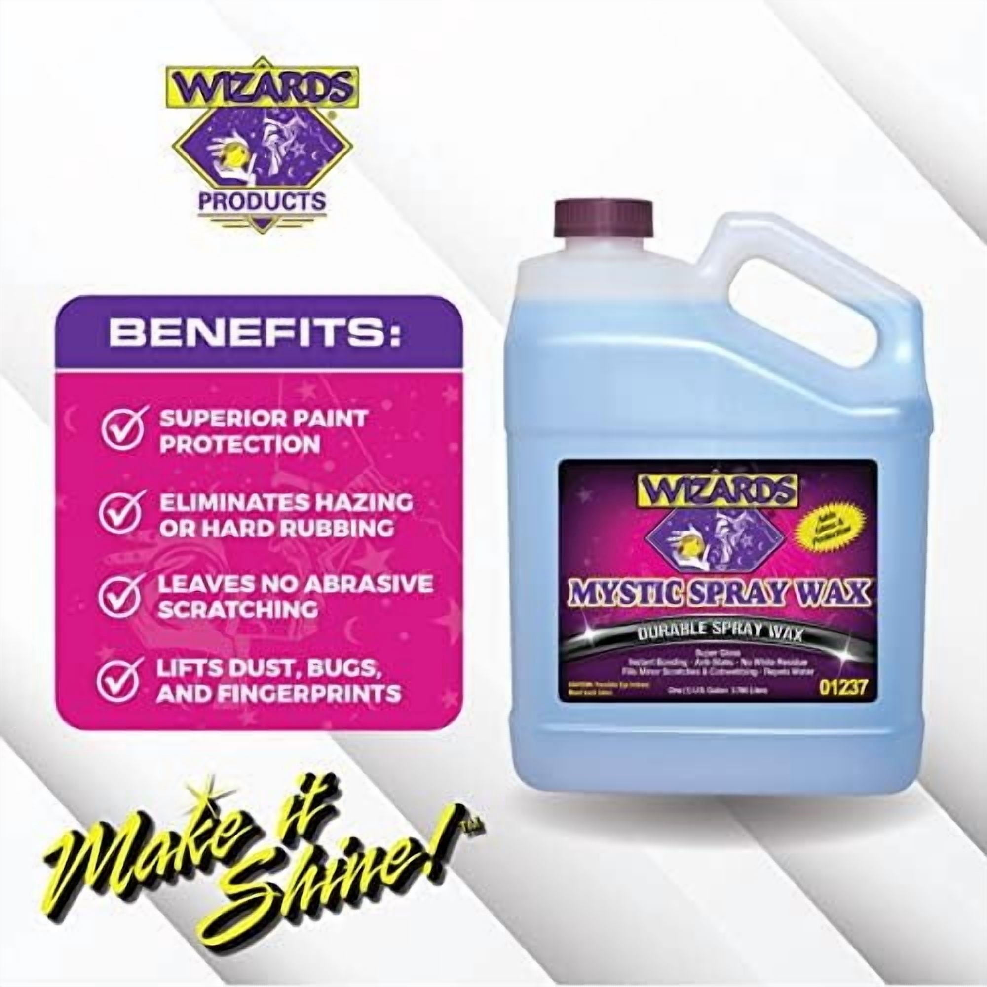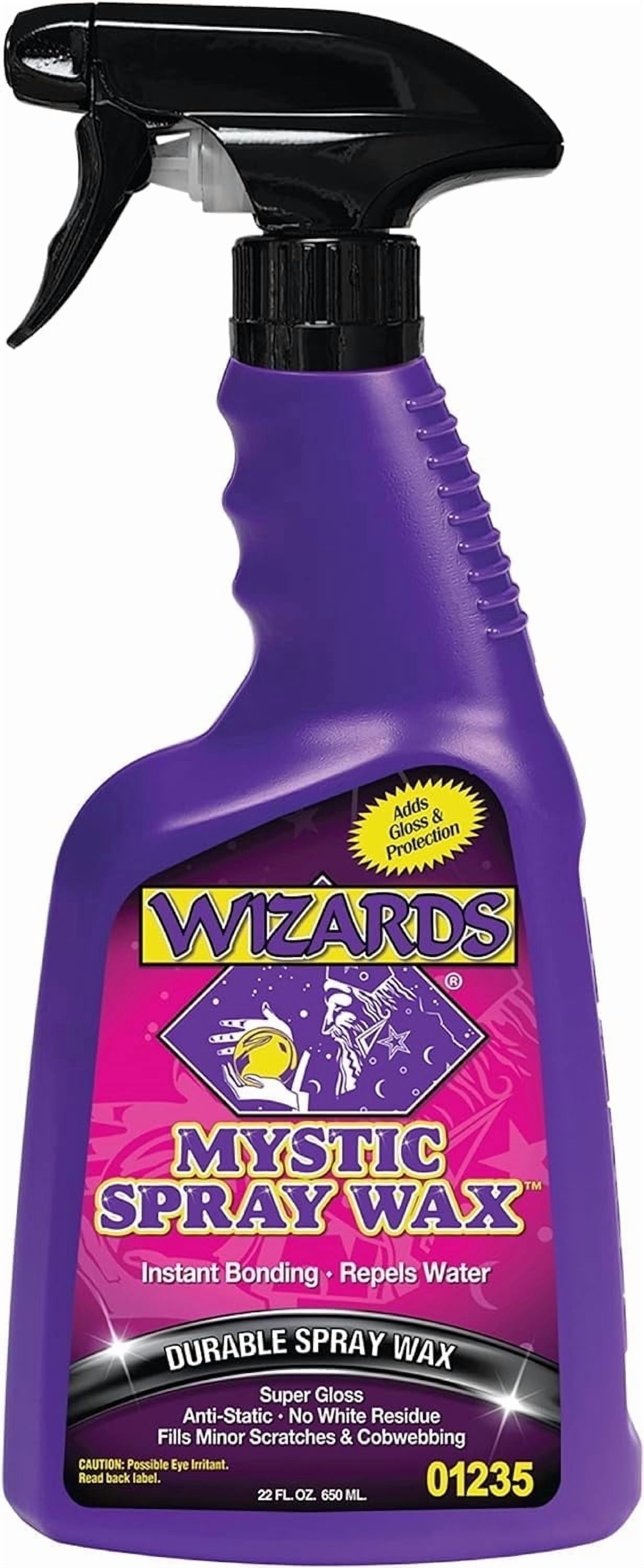 Wizards Mystic Spray Wax is a high-gloss car spray polish and cleaner with Nano Polymer Technology that enhances shine, protects surfaces, and cleans glass—all in one easy-to-use 22 FL Oz bottle.