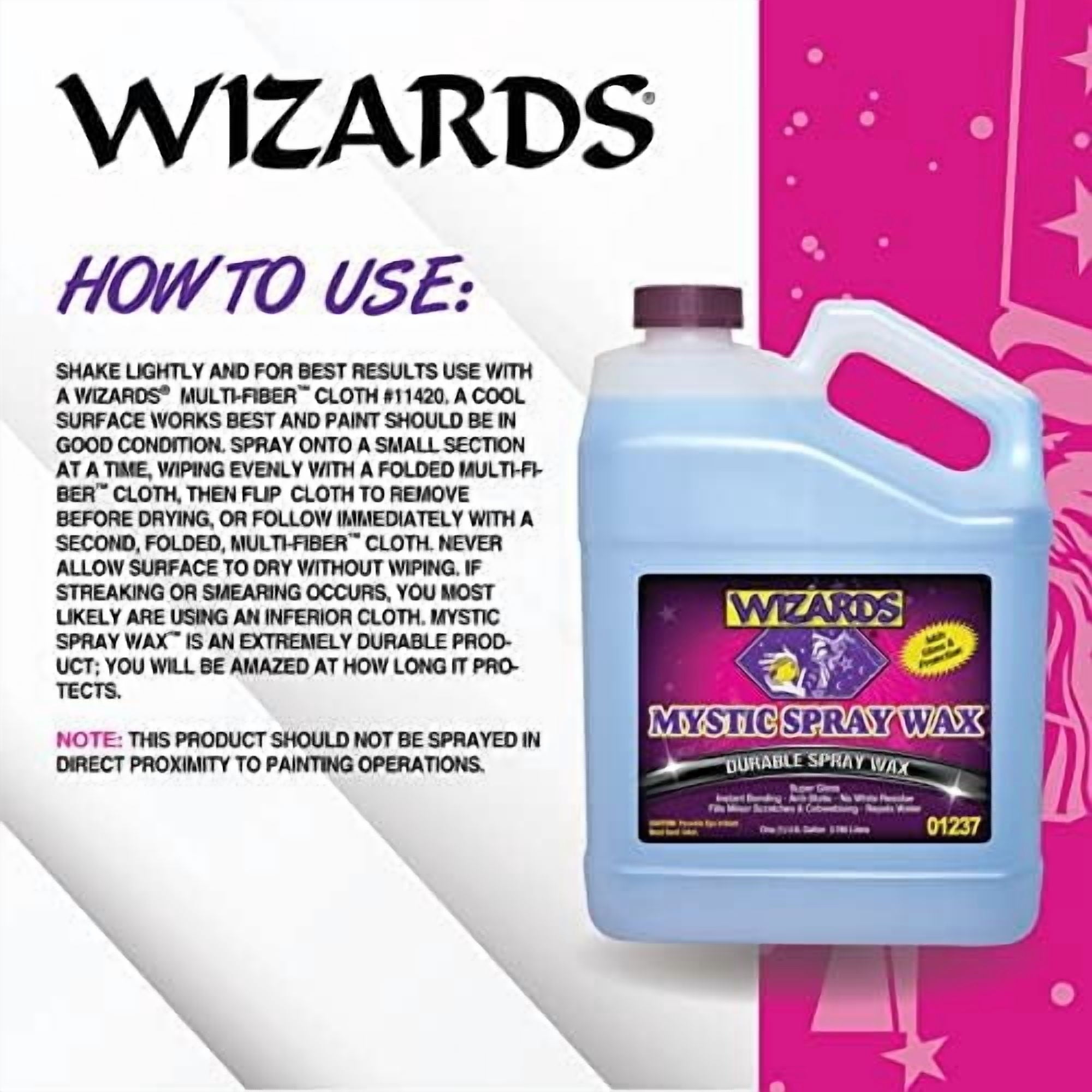 Whether you’re detailing your car, truck, motorcycle, RV, or boat, Wizards Mystic Spray Wax ensures a smooth, glossy finish that turns heads—without the mess or effort of traditional waxes. Fast, effective, and safe for daily use.