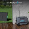• Full charge in 3 hrs (AC) or 4 hrs (2500W solar)