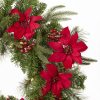 The Colonial wreath features Feel Real® branch tip technology, creating a decoration with remarkable realism. These crush-resistant branch tips are molded from real tree branches for an authentic appearance. This mixed tip wreath is trimmed with red pinsttia flowers and red berries. It is pre-lit with 70 battery operated warm white LED lights that are energy efficient and long lasting. Inlcudes a 6 hours ON/18 hours OFF timed operation. This wreath can be displayed on doors, walls, and windows in indoor or covered outdoor locations.