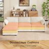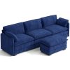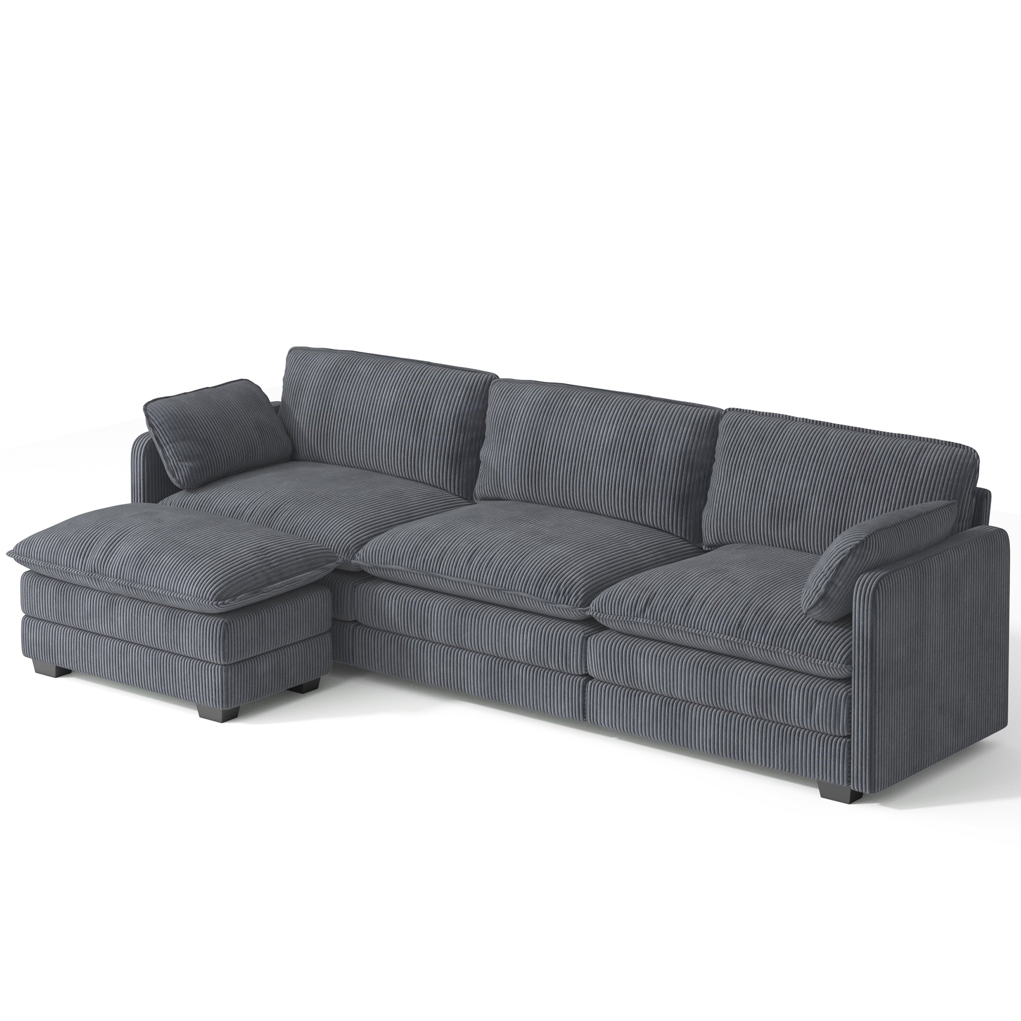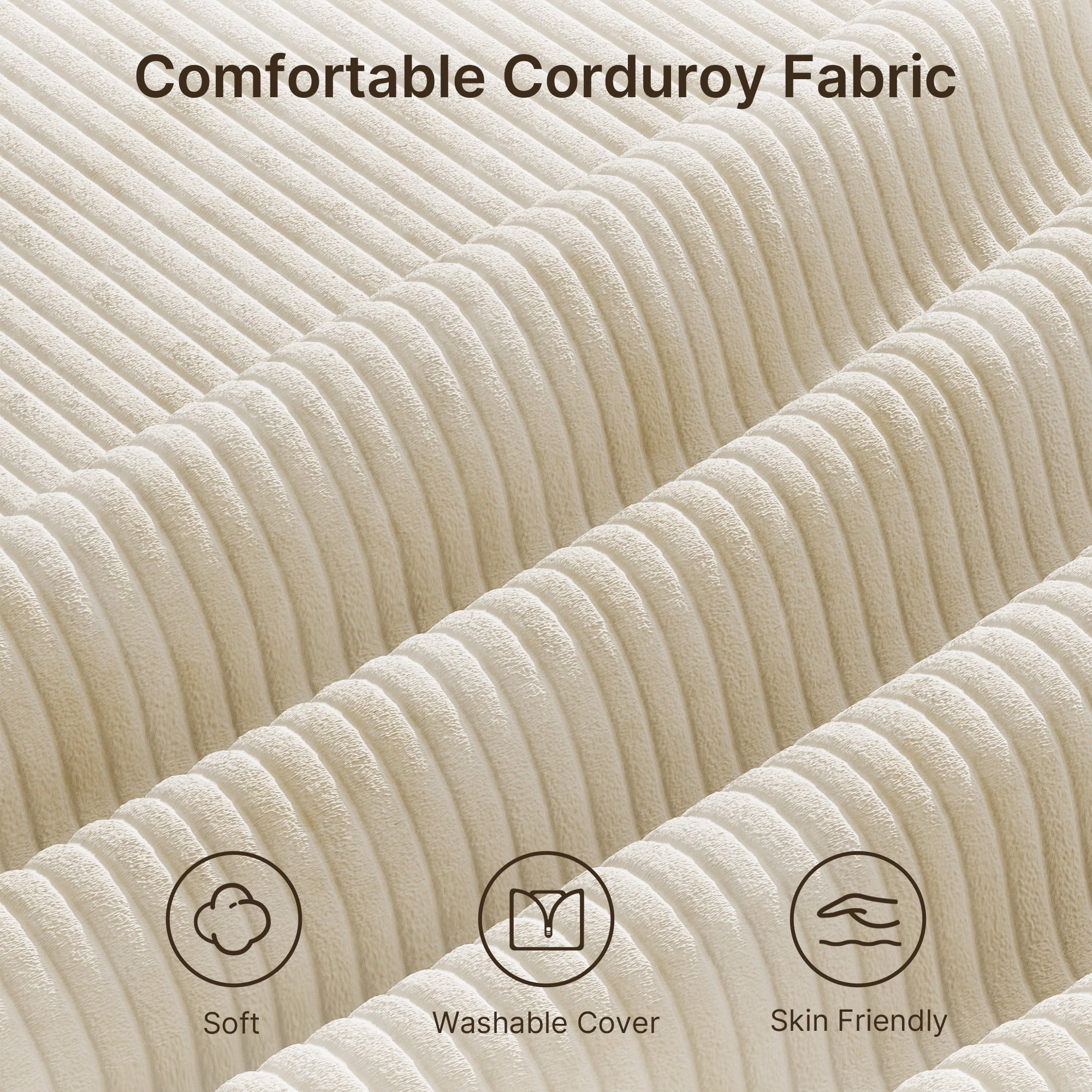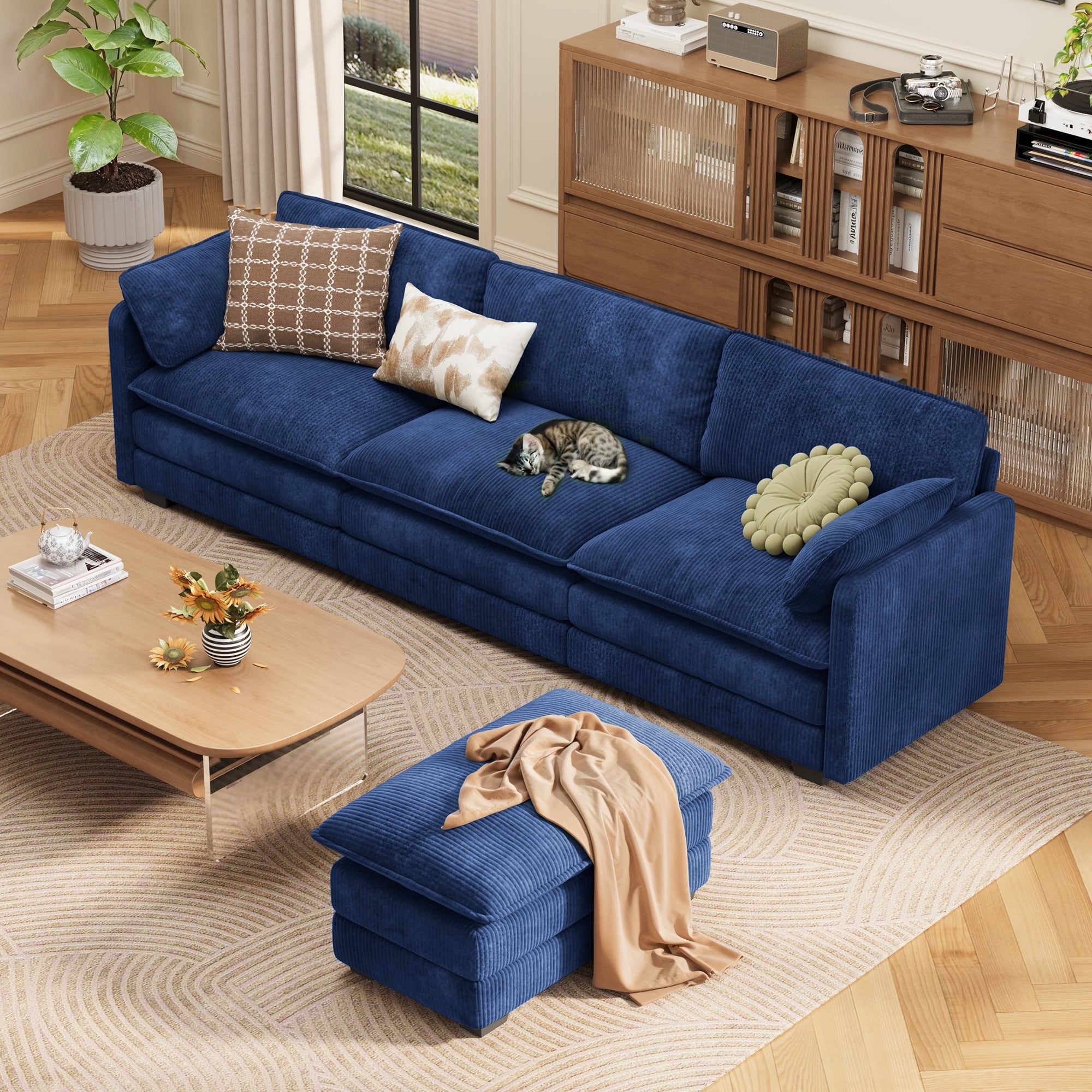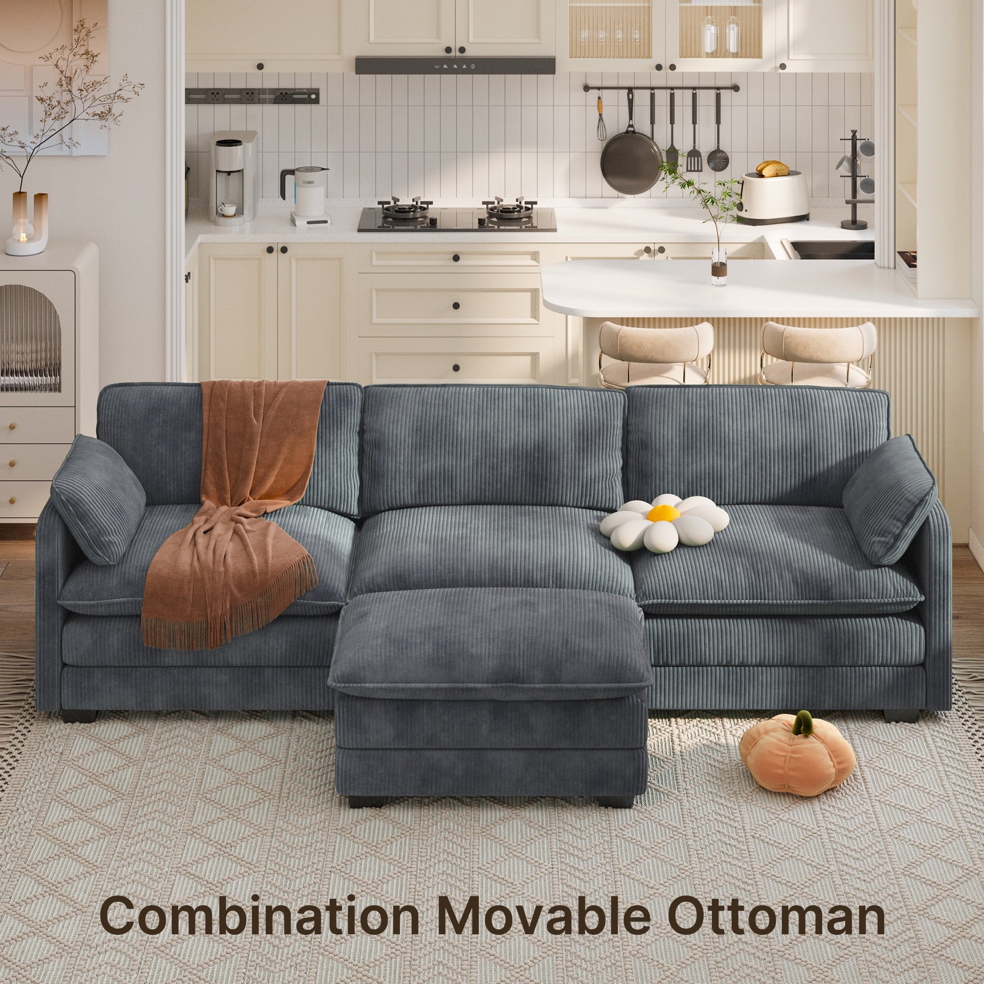 >>Features:✨ Cloud-Like Comfort for Total Relaxation: The double-layer high-resilience foam seat cushions deliver cloud-like softness while providing strong support—no more sinking too deep or feeling hard! The 22.8-inch deep seating area lets you lean back comfortably, and the 2 included arm pillows + movable ottoman let you adjust your lounging posture freely. Perfect for lazy Sundays, movie marathons, or post-work relaxation.🐾 Pet-Friendly Corduroy Fabric: Crafted with durable, tightly woven corduroy fabric, this sofa stands up to pet claws and playful scratches. All cushion covers have zippers and are fully removable—just toss them in the washing machine and tumble dry for easy cleaning. Say goodbye to stubborn pet hair, coffee spills, or dirt stains!🏠 Durable & Sturdy Structure: Built with a solid wooden frame and high-quality support springs, the sofa is stable and durable, not easy to shake or deform. The 108-inch length can comfortably seat 4 family members, and the ergonomic design (paired with arm pillows) alleviates pressure on your lower back and muscles—say goodbye to back pain from long sitting!🔄 Flexible Combination for Any Space: With the movable ottoman, this sofa can be rearranged into multiple styles: a 3-seater straight sofa, an L-shaped sectional, a sofa with a chaise, or even a temporary guest bed. It adapts to small living rooms, bedrooms, or apartments—you can create your own furniture layout!🛠️ Assembly Takes Time, But It’s Worth It: A friendly reminder—with 109 labeled parts, assembly may take some time. But we provide detailed picture-guided instructions to help you step by step. Note: The cushions are made of memory foam; after unpacking, pat them gently to speed up rebound, and wait up to 48 hours for the sofa to reach its optimal shape—your patience will be rewarded with a super comfy sofa!🤝 48-Hour After-Sales Support: If you encounter missing parts, damaged components, or assembly troubles, contact us immediately. Our team will respond within 48 hours and assist you until the problem is fully resolved.