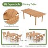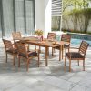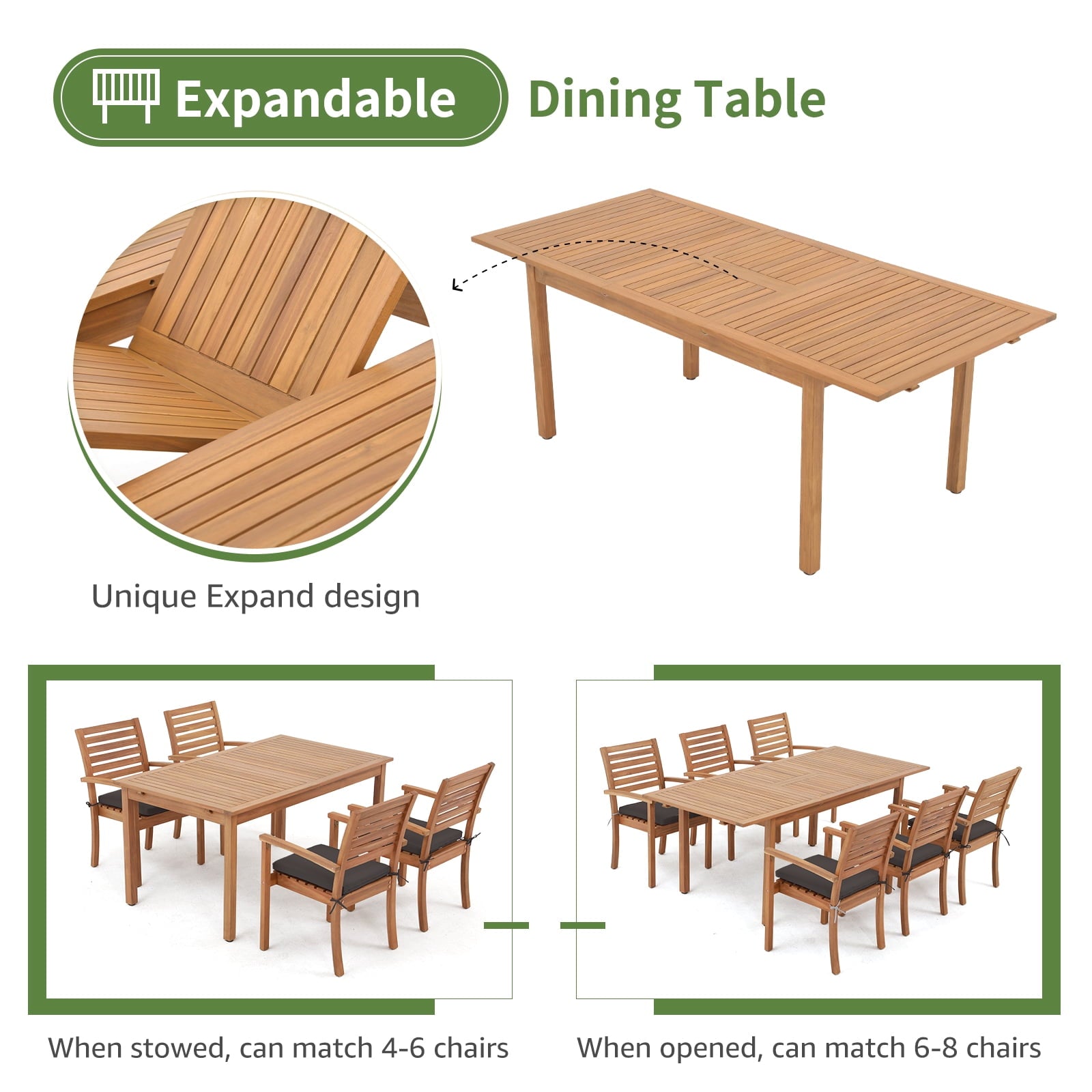 - FSC-Certified Wood: Our 7-piece outdoor dining set is constructed of sustainable FSC-certified acacia wood to ensure the chair can hold up to 300 lbs! The surface is coated with high-grade oil paint making the patio table and chairs weather-proof and built to last.