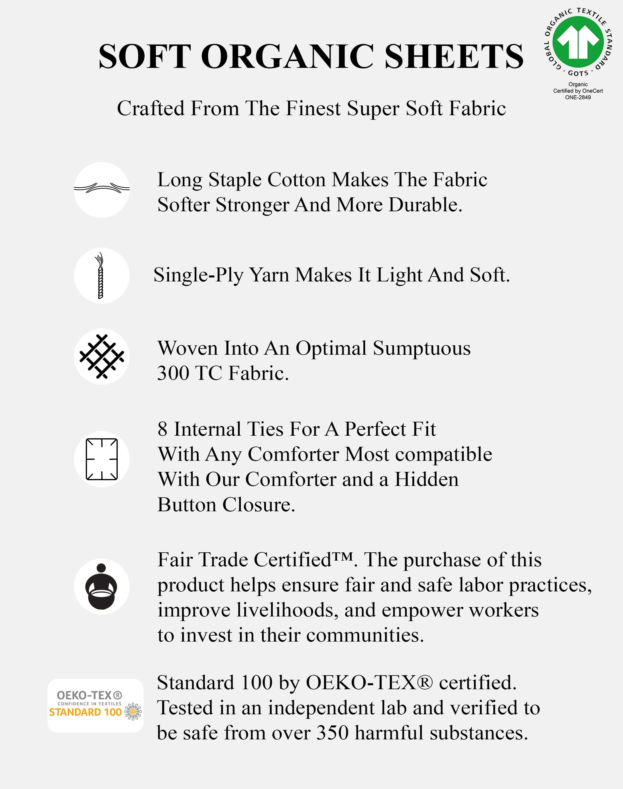 Upgrade your bed to luxury status. Made with certified 100% Organic Cotton this bedding features a sateen weave and a Optimal 300 thread count for unparalleled softness and a smooth, wrinkle-resistant feel.Our buttery soft classic sateen sheets get even softer over time.