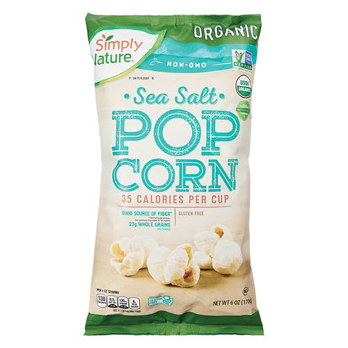 Enjoy a bag of popcorn without the guilt when you try Simply Nature Organic Sea Salt Popcorn. With only 35 calories per cup, this popcorn makes a delicious snack that you can enjoy anytime of the day, anywhere you want. This sea salt popcorn also is a good source of fiber, has 23 grams of whole grains, and is gluten free. Whether you need a snack while working or when you’re on-the-go, pick up a bag or two of this Simply Nature organic popcorn and discover why it’s so popular.
