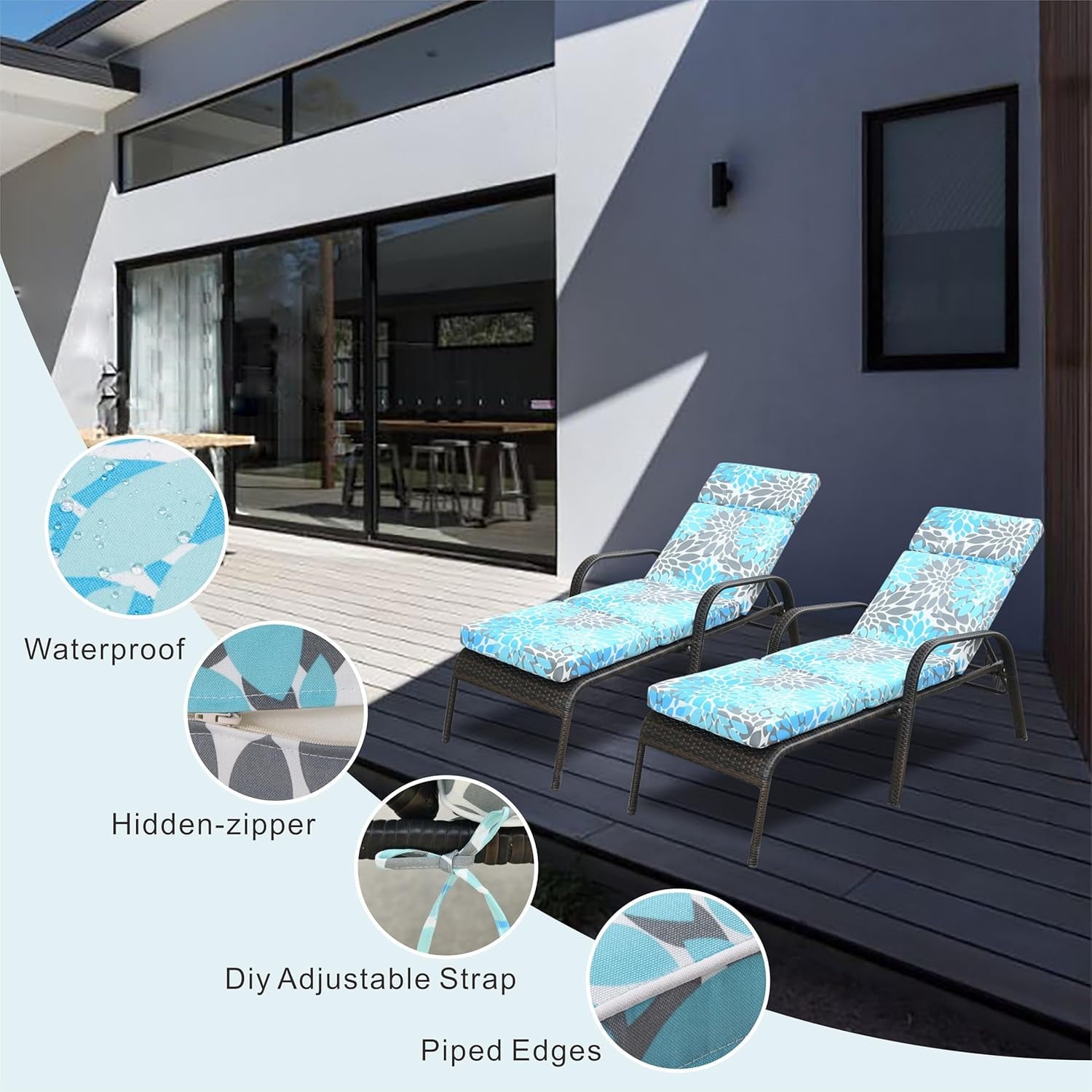 - ⭐quality fabrics – our chaise lounge cushion can withstand the elements. the material of high quality polyethylene fabric surface allows the cushion to not fade easily. not only can it be used in a variety of outdoor environments, but it also offers excellent stain resistance indoors, so if a stain occurs, simply wipe it away with a damp wipe!
