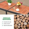 ACACIA WOOD TABLE TOP: The 35*59-inch acacia wood table top provides plenty of room for food. The treated acacia wood is highly resistant to corrosion and not easy to crack and warp. The steel frame has enough strength and stability.