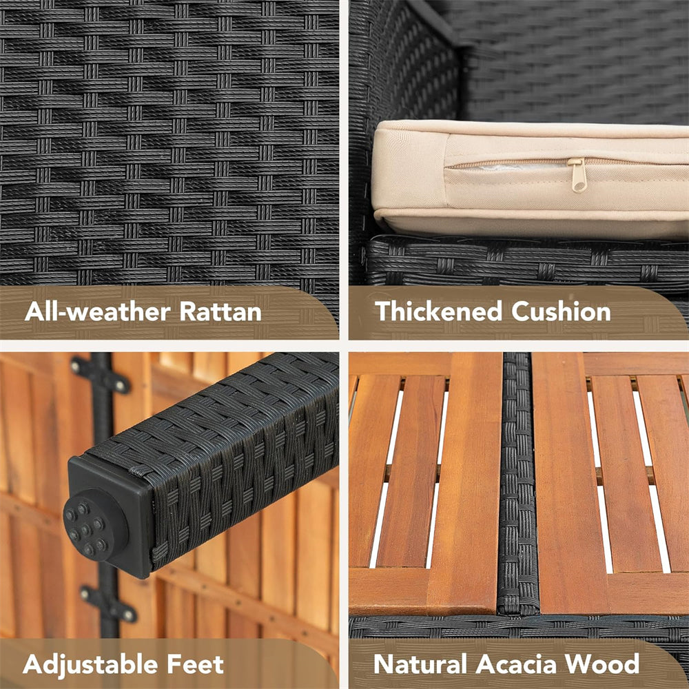 UPGRADED DINING TABLE AND CHAIRS: Acacia wood table top is safer than tempered glass table top and comes with adjustable legs. The front legs of the chairs are equipped with adjustable feet, suitable for various floor conditions.